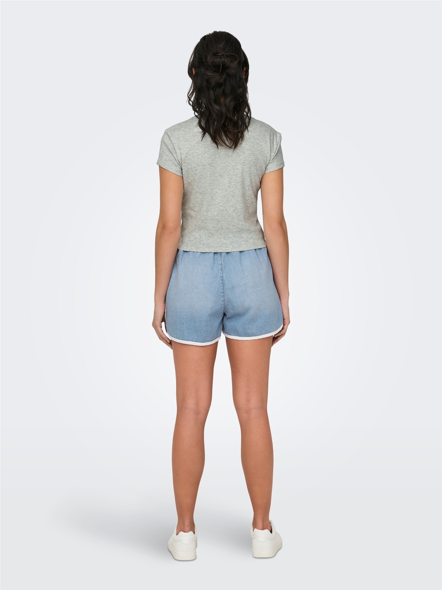 ONLELINA S/S O-NECK SHORT TOP JRS NOOS Kadın Gri Bluz - 15320229