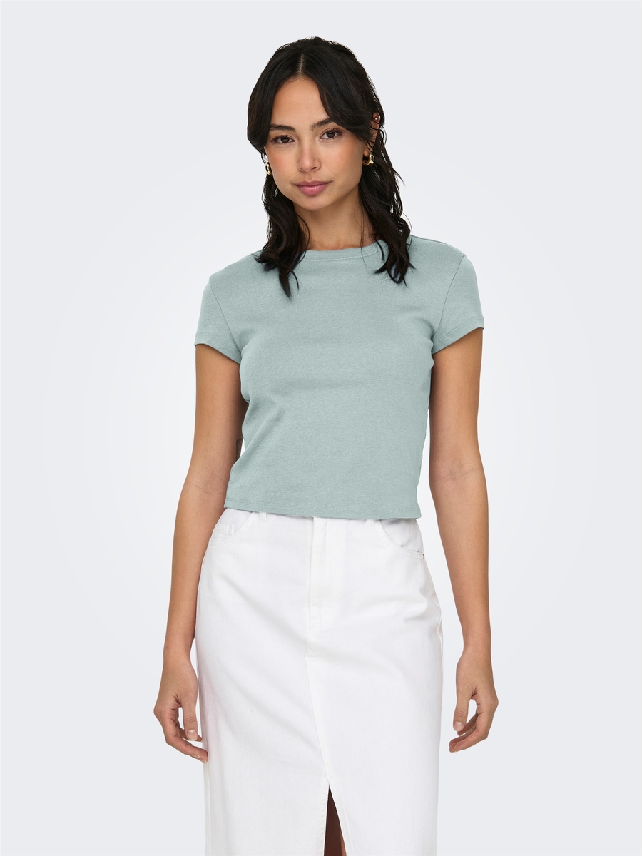 Only ONLELINA S/S O-NECK SHORT TOP JRS NOOS - Kadın Bluz - 15320229