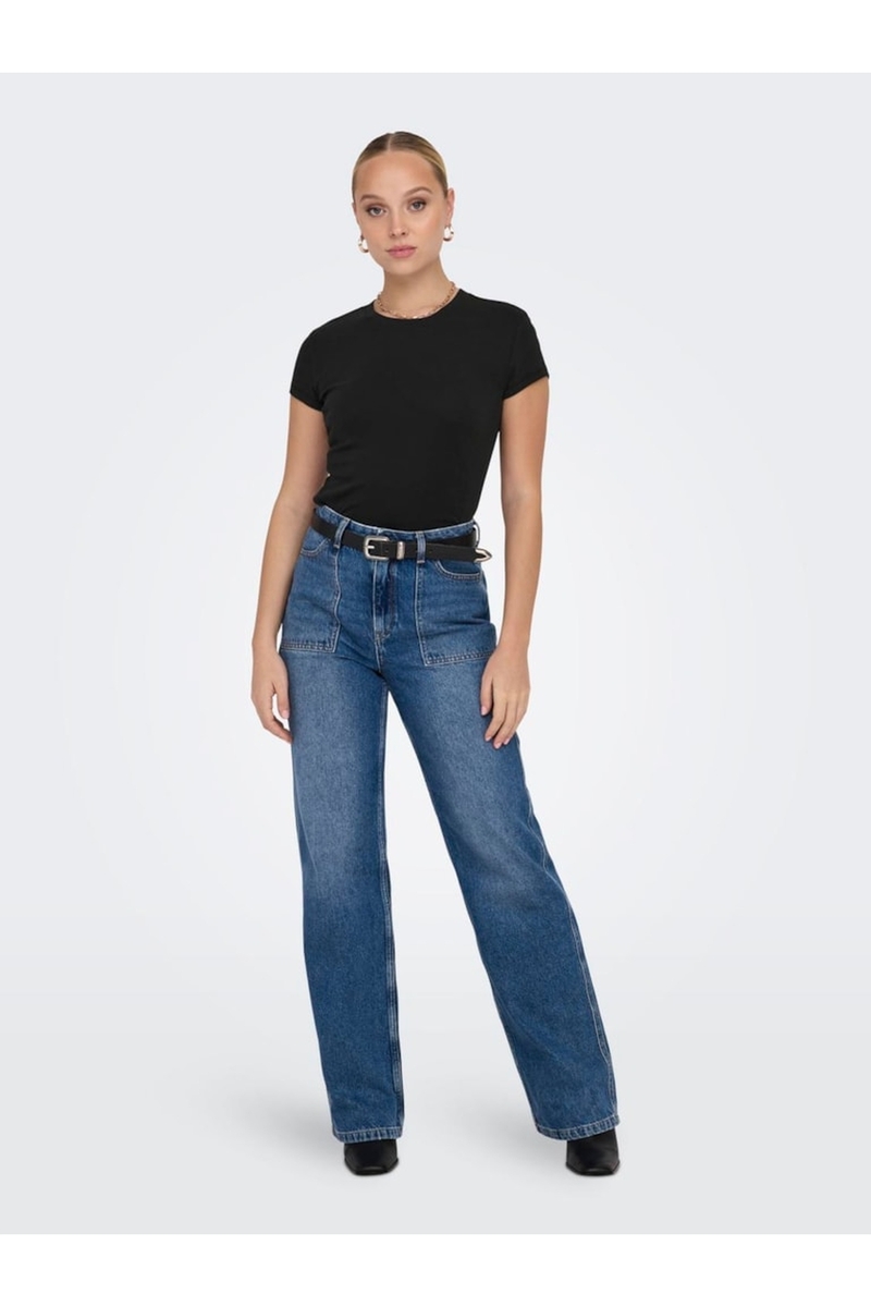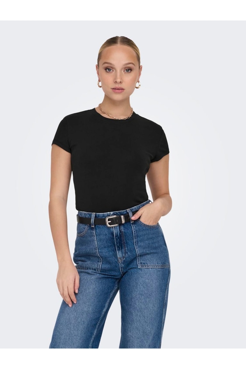 ONLELINA S/S O-NECK SHORT TOP JRS NOOS Kadın Siyah Bluz - 15320229