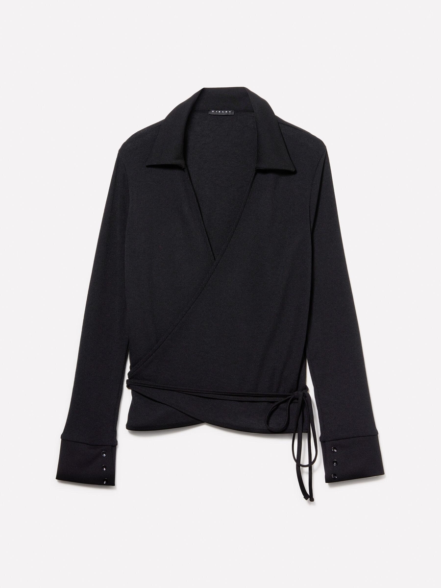 Önü Çapraz Detaylı Uzun Kollu Gömlek Yaka Bluz Kadın Siyah Gömlek - 324A3FTRL400R