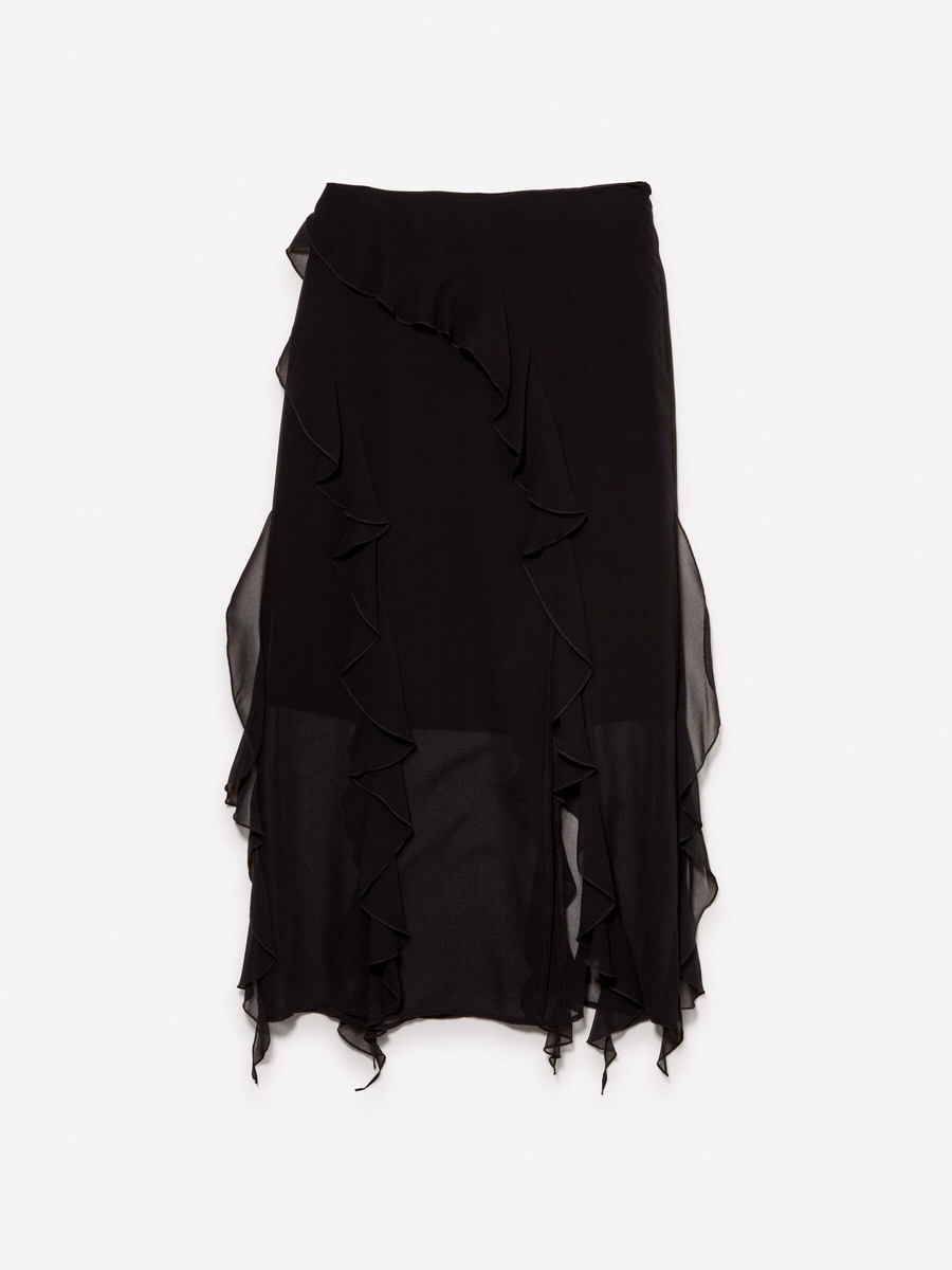 Önü ve Arkası Fırfır Detaylı Midi Şifon Etek Kadın Siyah Etek - 324A4T2VL002I