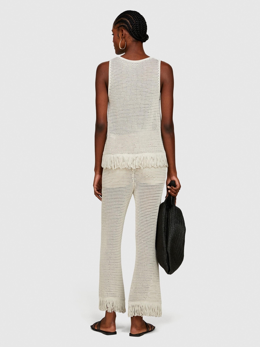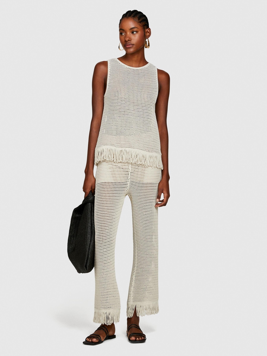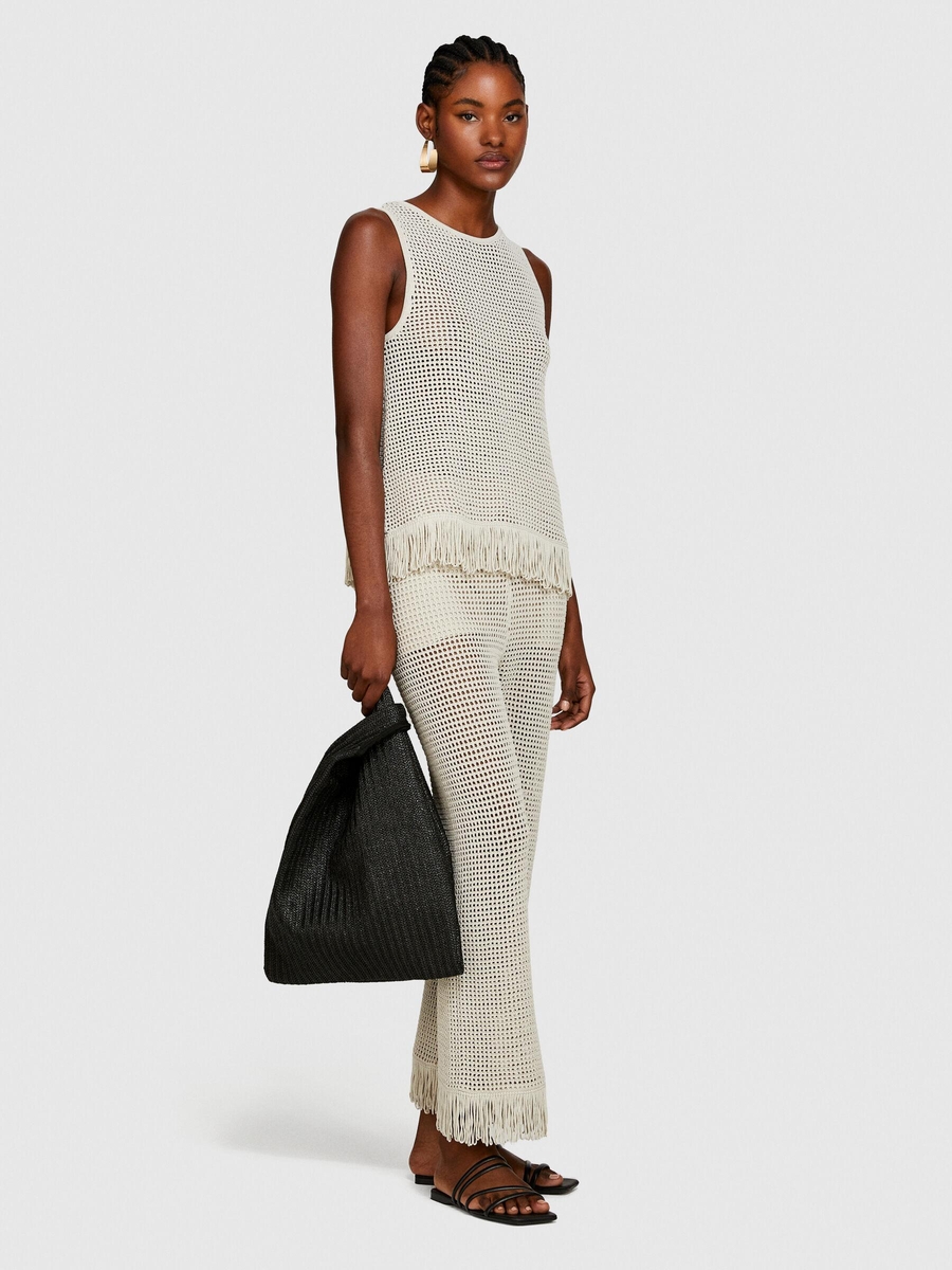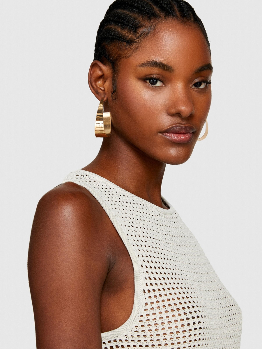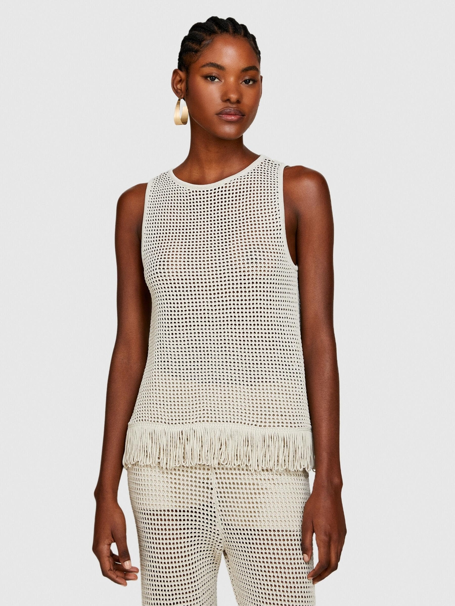 Örgü Motifli Geniş Bisiklet Yaka Sıfır Kol T-Shirt Kadın Gri T-Shirt - 324P196PMH00C