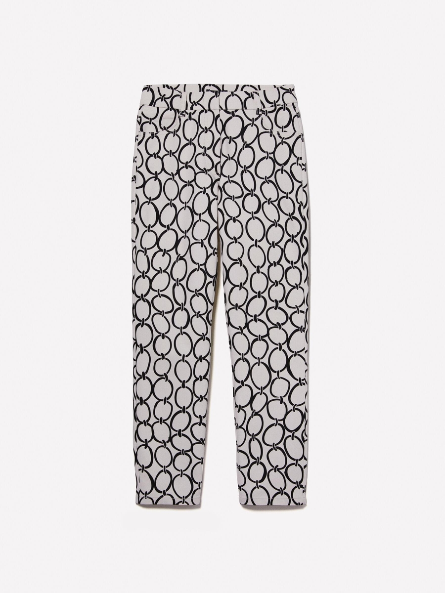 Pamuk Karışımlı 5 Cepli Baskılı Slim Fit Bilek Boy Pantolon Kadın Kırık Beyaz Mix Pantolon - 324A4ZJSLE03S
