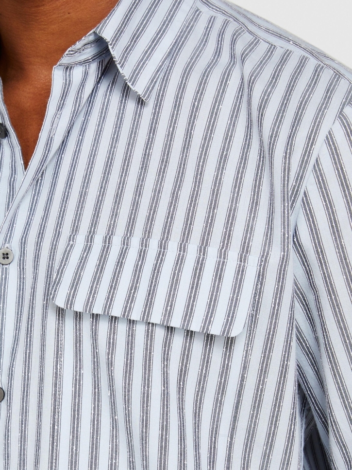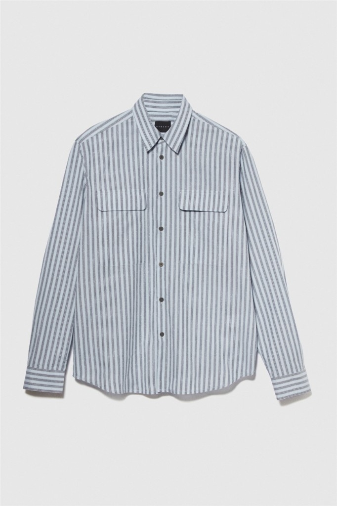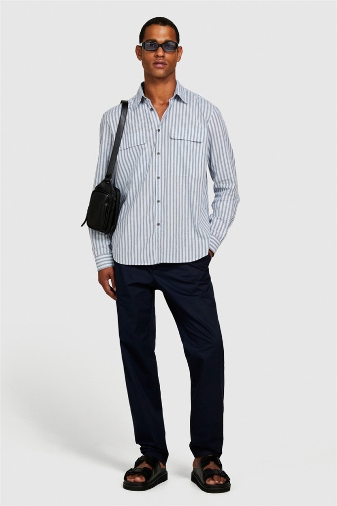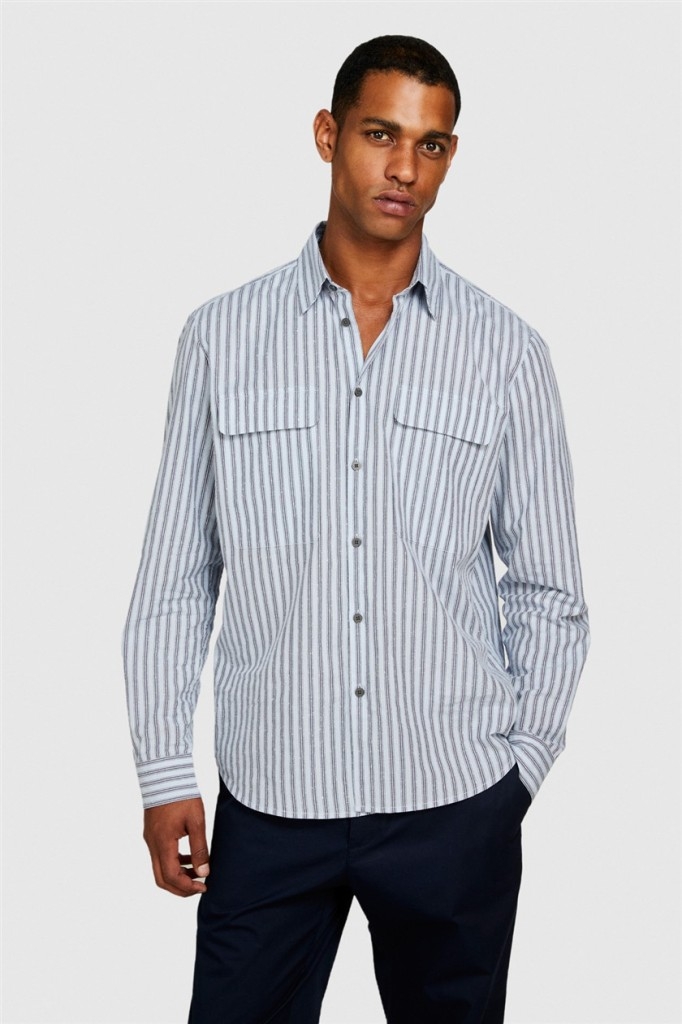 Pamuk Karışımlı Çizgili 2 Cepli Regular Fit Gömlek Erkek Siyah Mix Gömlek - 324P532ZSQ03P