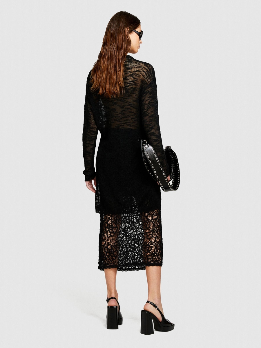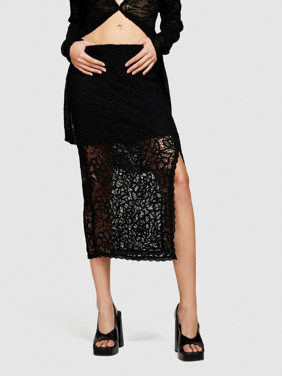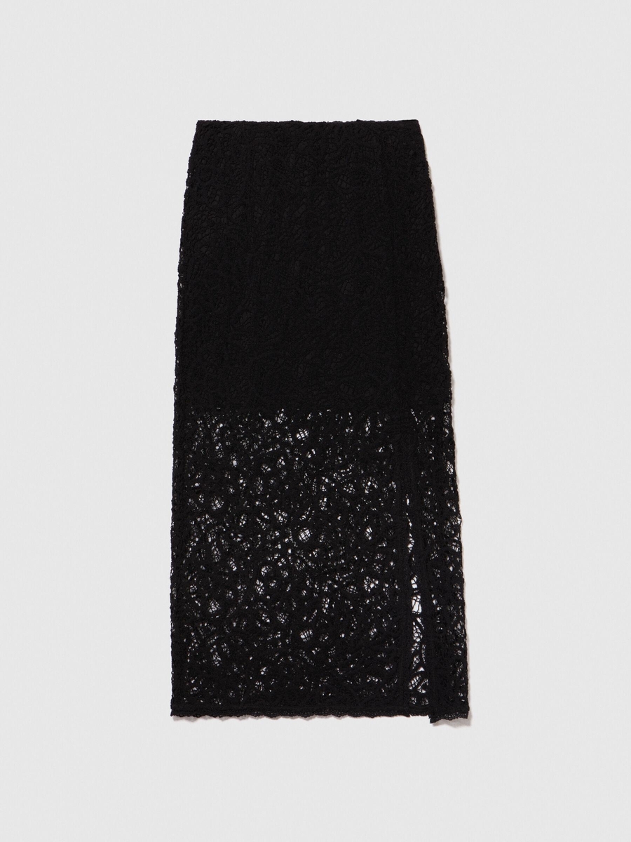 Pamuk Karışımlı İki Dokulu Yanları Yırtmaçlı Midi Kalem Etek Kadın Siyah Etek - 324P41BLL0022