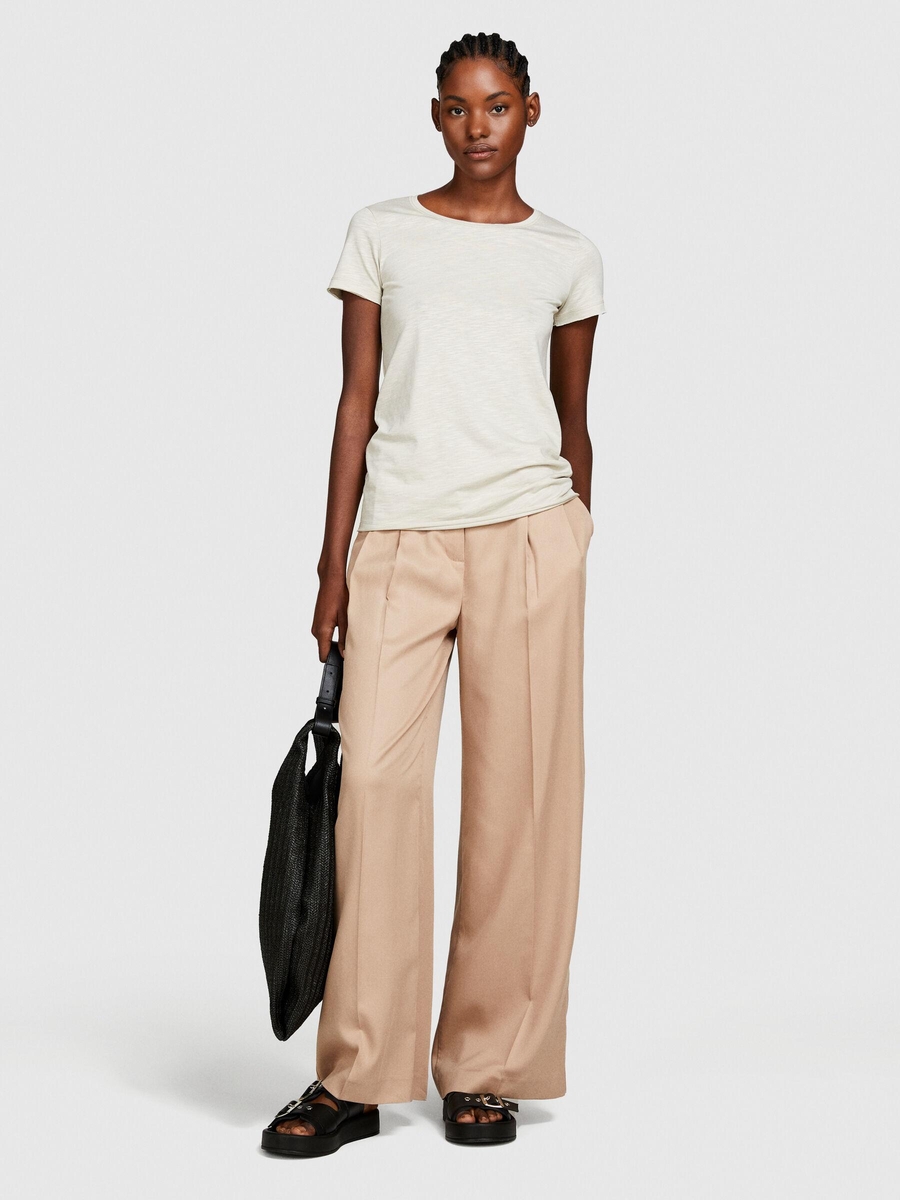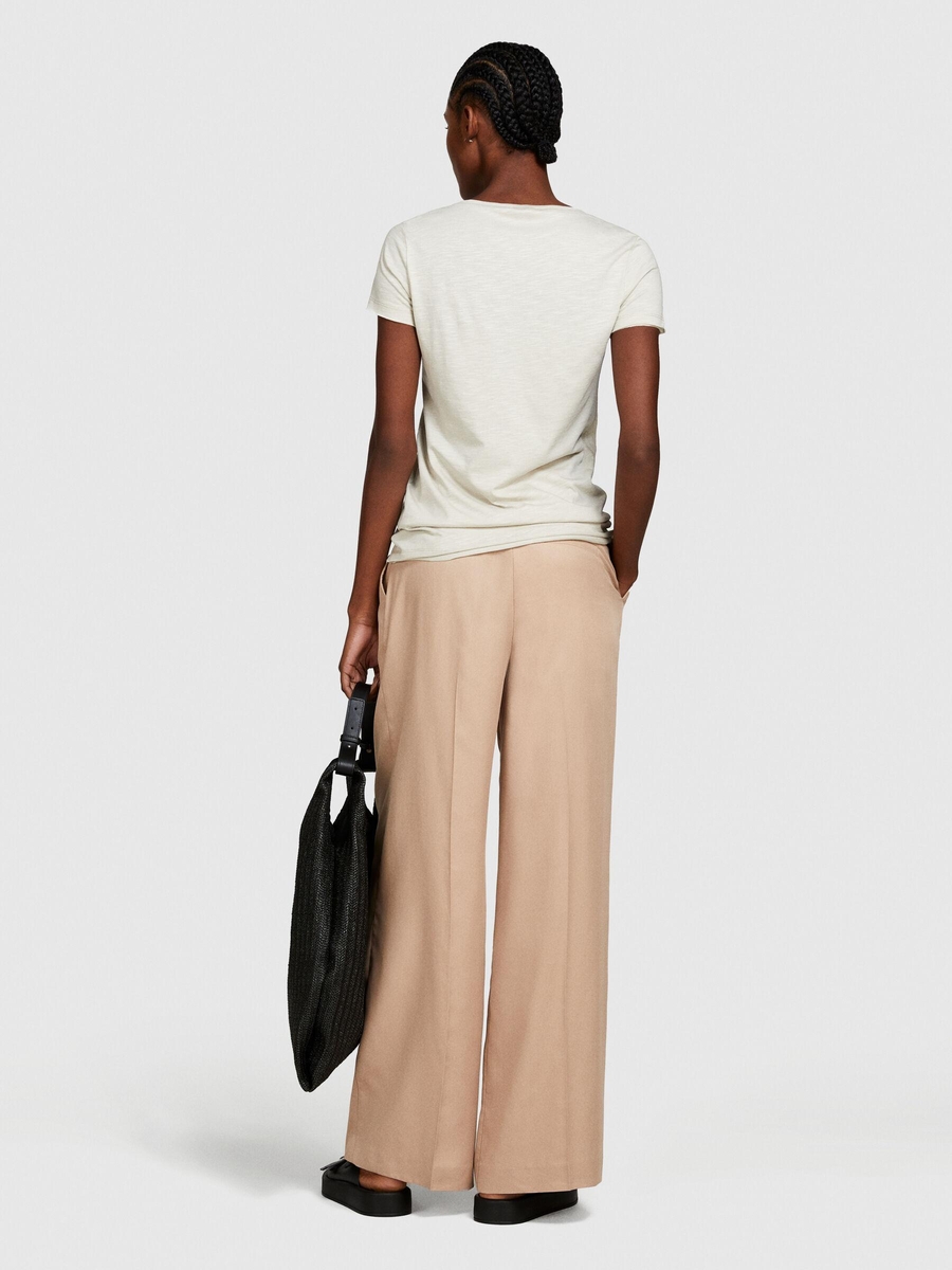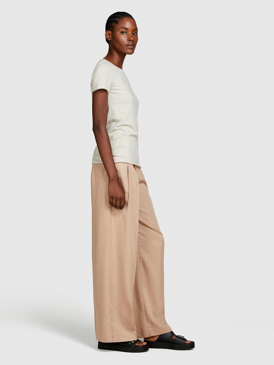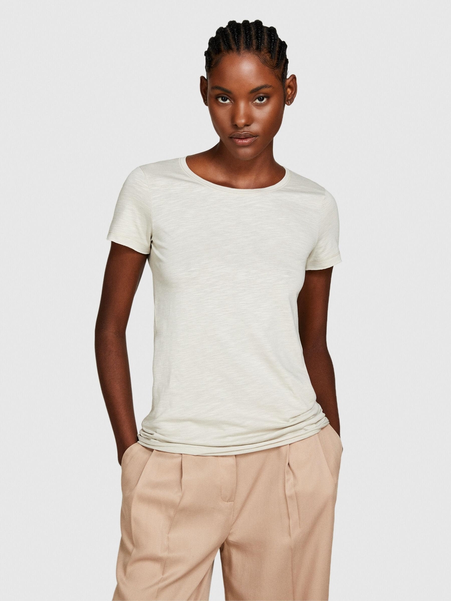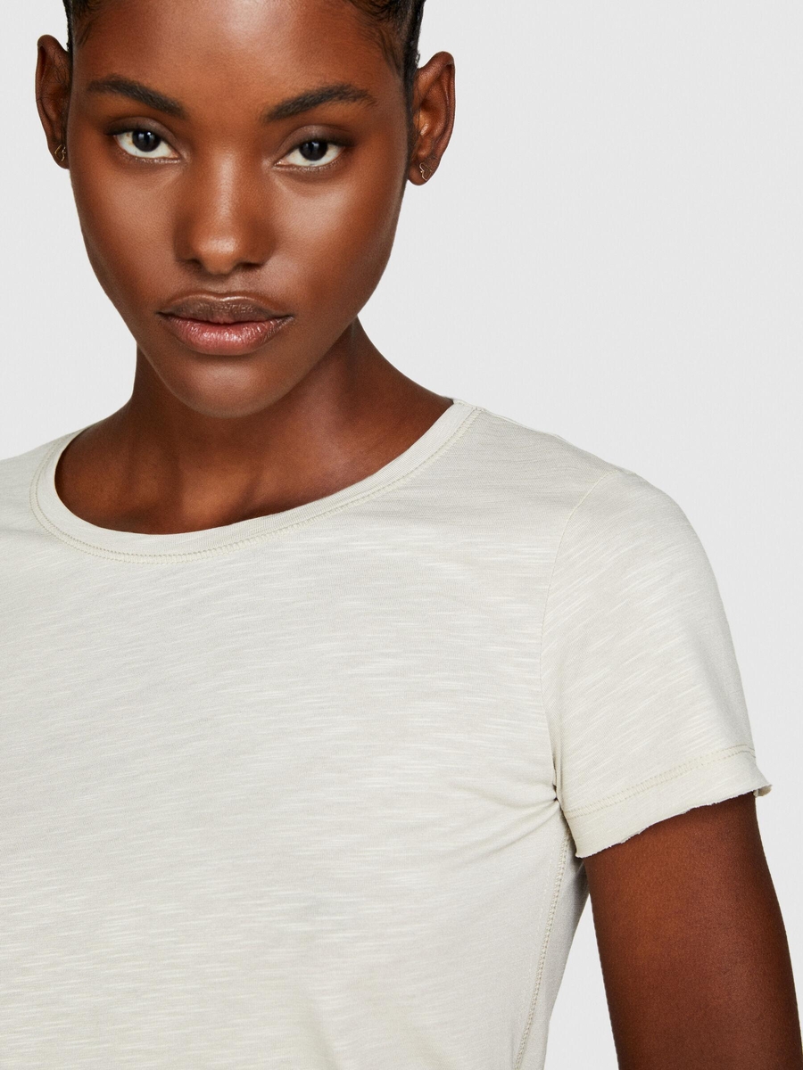 Pamuk Modal Karışımlı Bisiklet Yaka T-Shirt Kadın Bej T-Shirt - 324P3TNHL103L