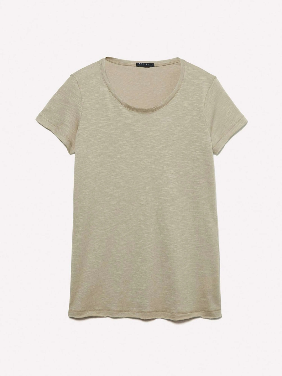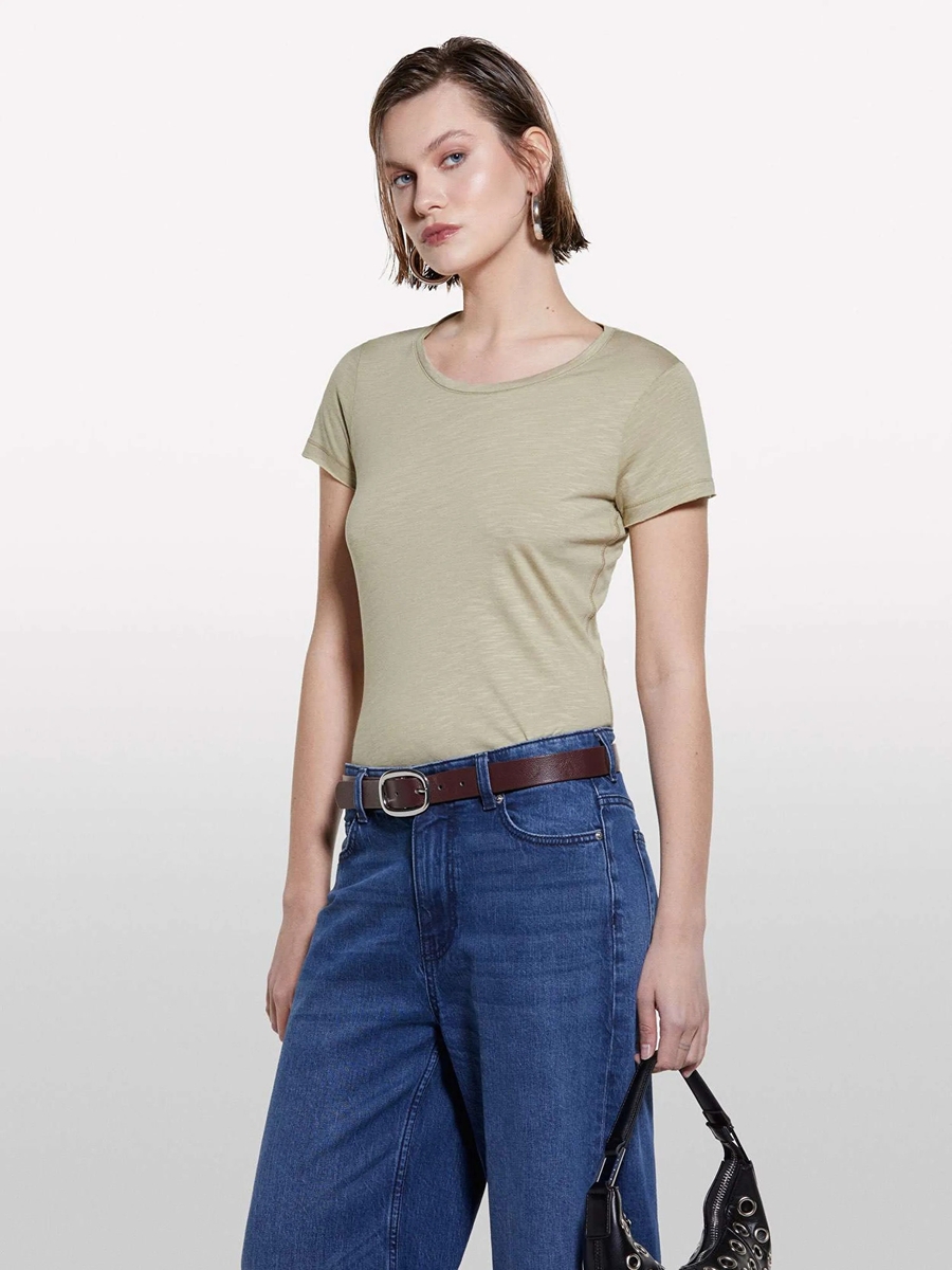 Pamuk Modal Karışımlı Normal Kalıp Bisiklet Yaka T-Shirt Kadın Kum Rengi T-Shirt - 325P3TNHL11A2