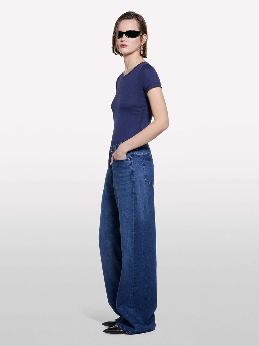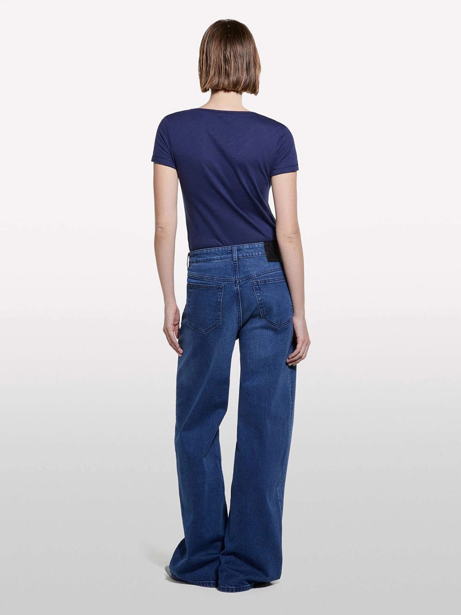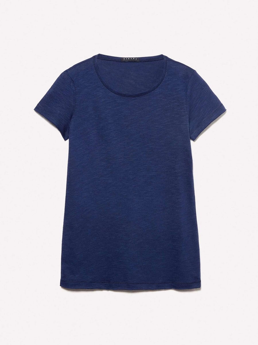 Pamuk Modal Karışımlı Normal Kalıp Bisiklet Yaka T-Shirt Kadın LACİVERT T-Shirt - 325P3TNHL11A2