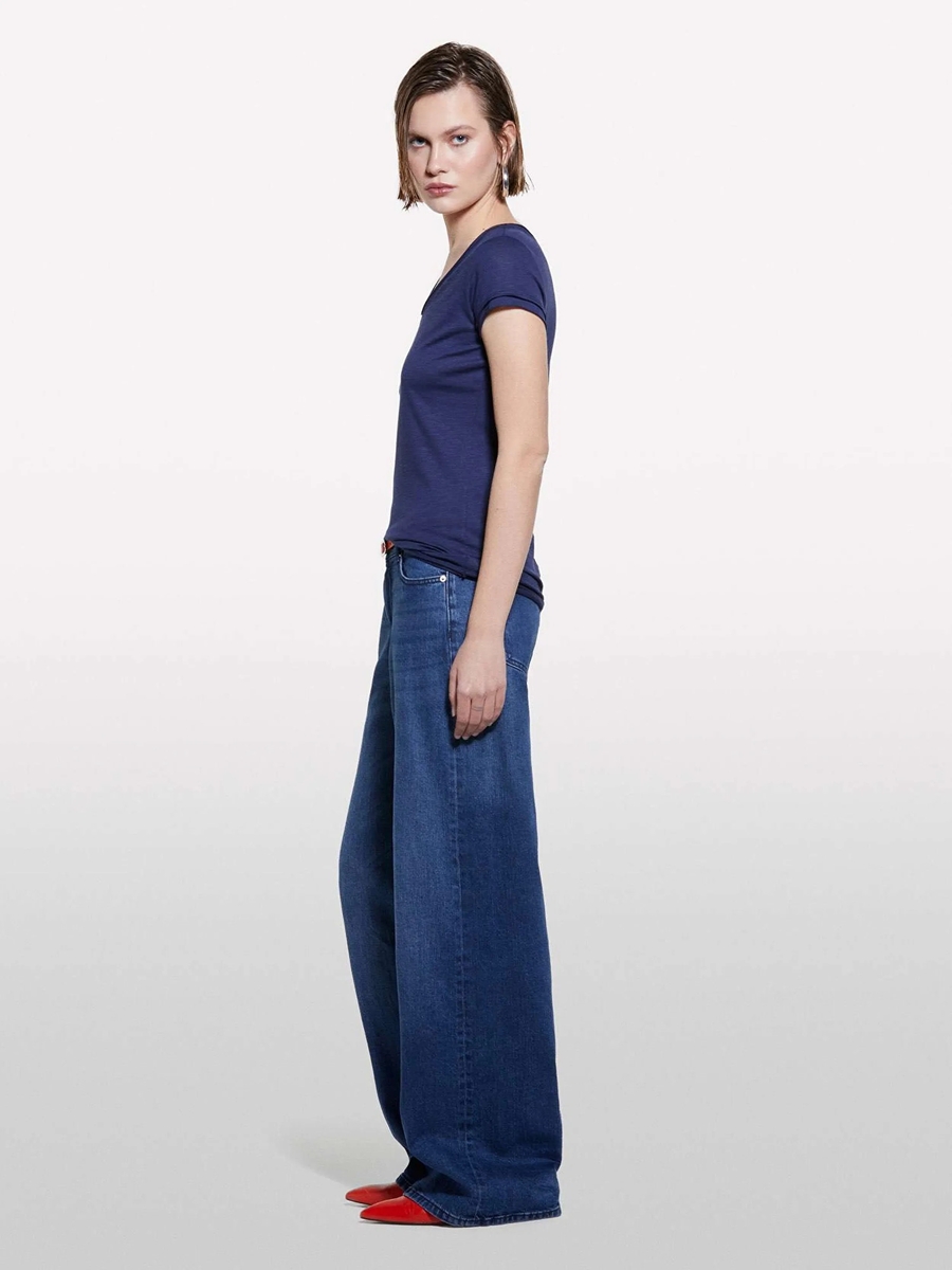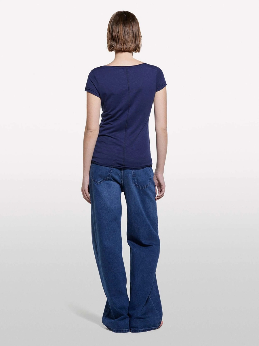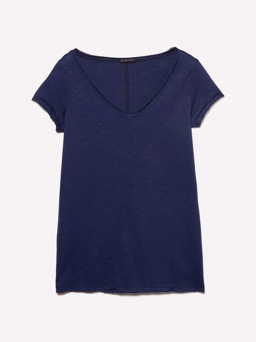 Pamuk Modal Karışımlı Normal Kalıp V Yaka Slub T-Shirt Kadın LACİVERT T-Shirt - 325P3TNHL4007