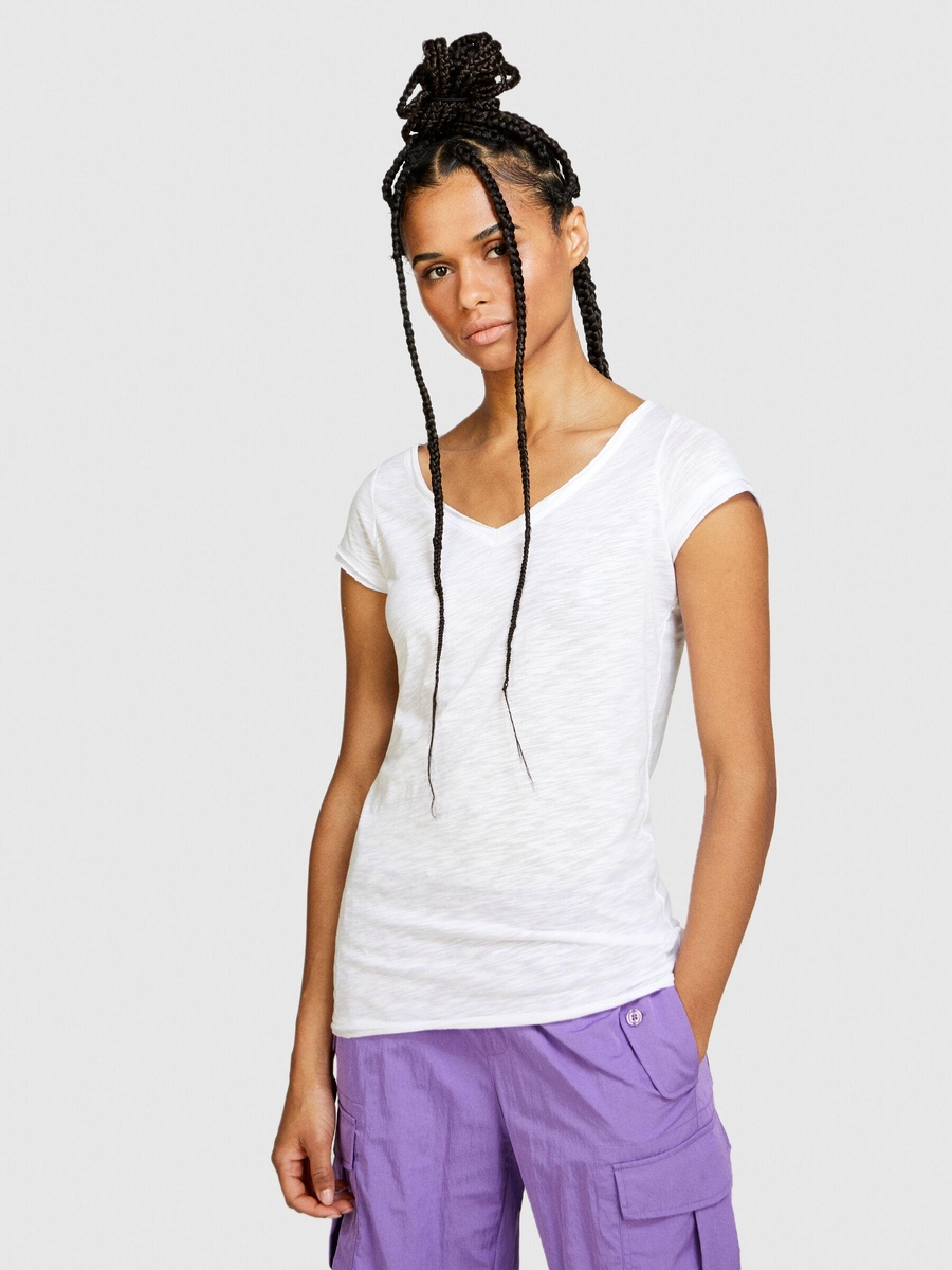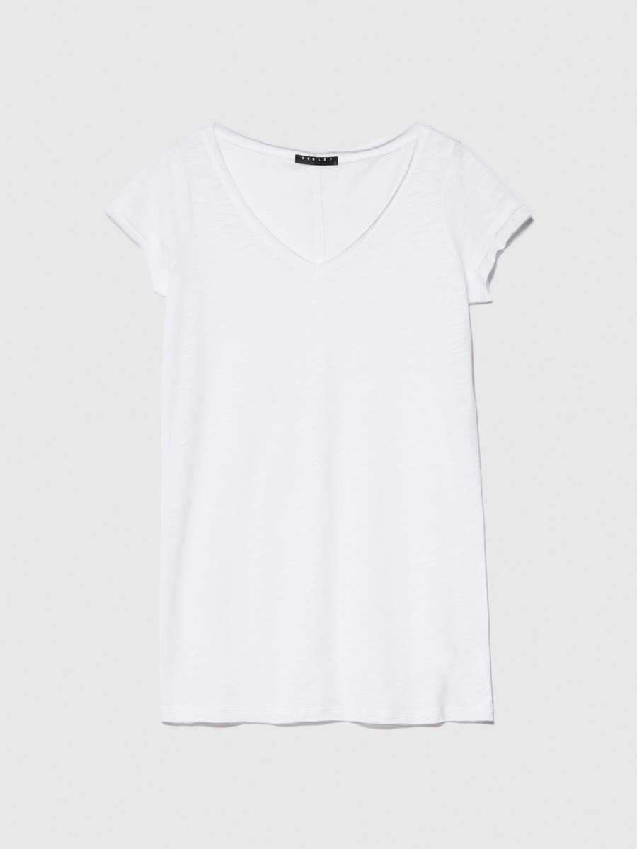 Pamuk Modal Karışımlı Normal Kalıp V Yaka T-Shirt Kadın Beyaz T-Shirt - 324P3TNHL4007