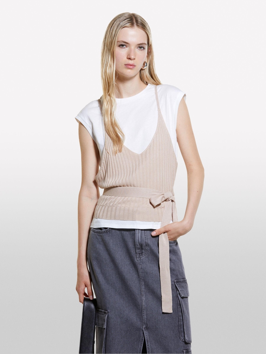 Pamuk ve Modal Karışımlı İki Parça Görünümlü T-Shirt Kadın Mavi T-Shirt - 324A3UNZL105V