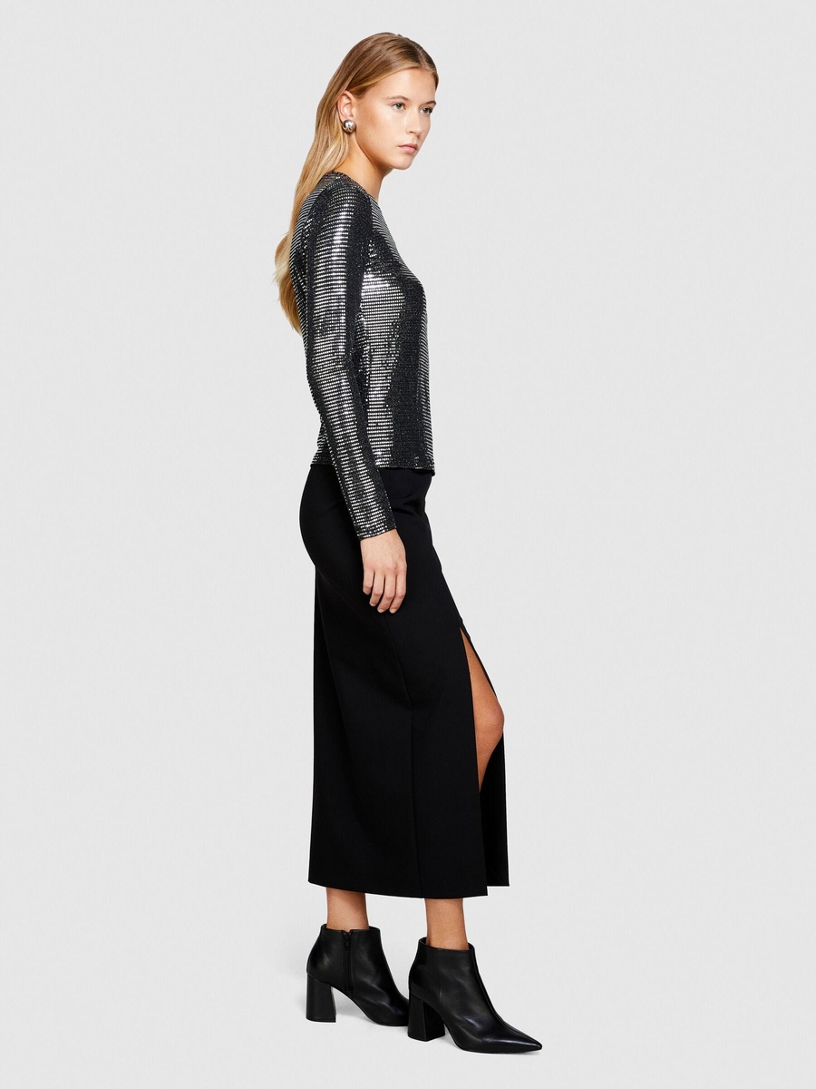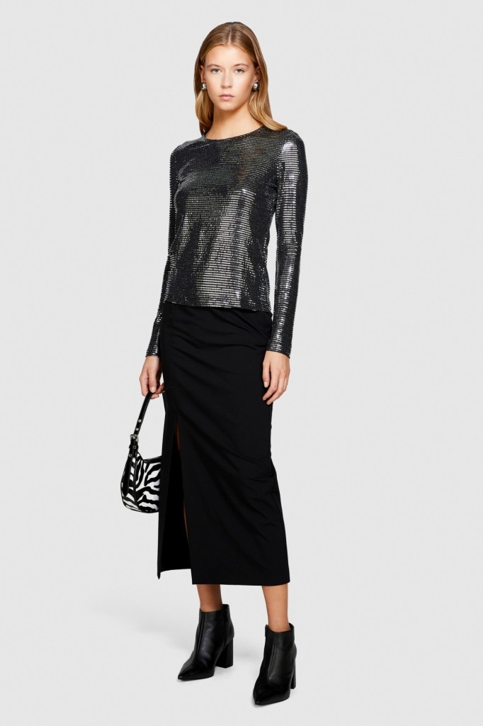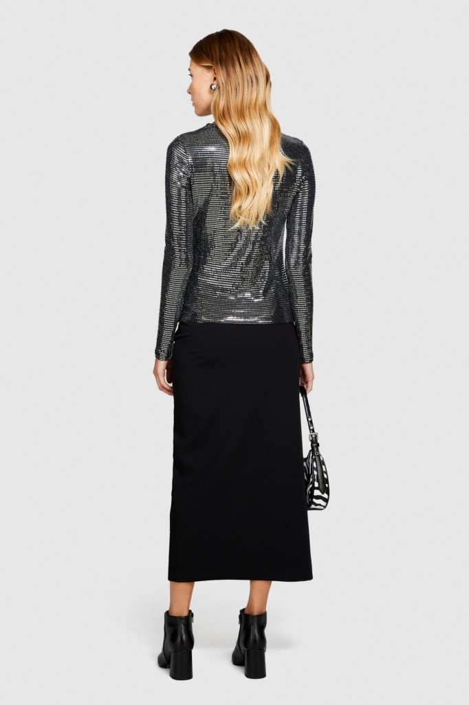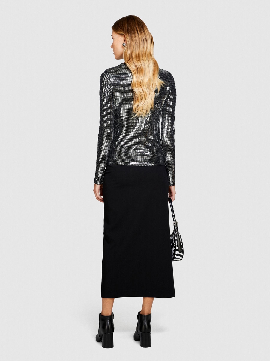 Poliviskoz Esnek Midi Boy Yandan Fermuarlı Etek Kadın Siyah T-Shirt - 323A47N8L001N