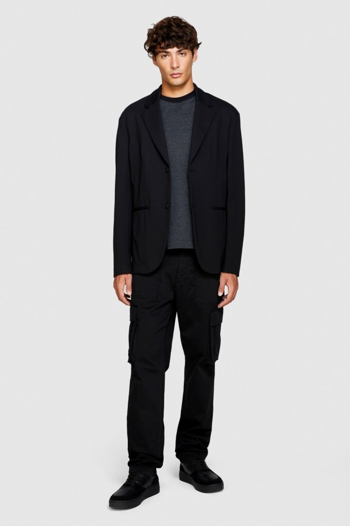 Rahat Kalıp Yarı Parlak Kargo Pantolon Erkek Siyah T-Shirt - 323A47U4SF03W
