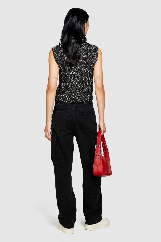 Recyle Koton Rahat Kalıp Denim Kargo Pantolon Kadın Lacivert T-Shirt - 323A4LENLE02V