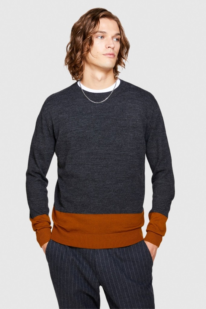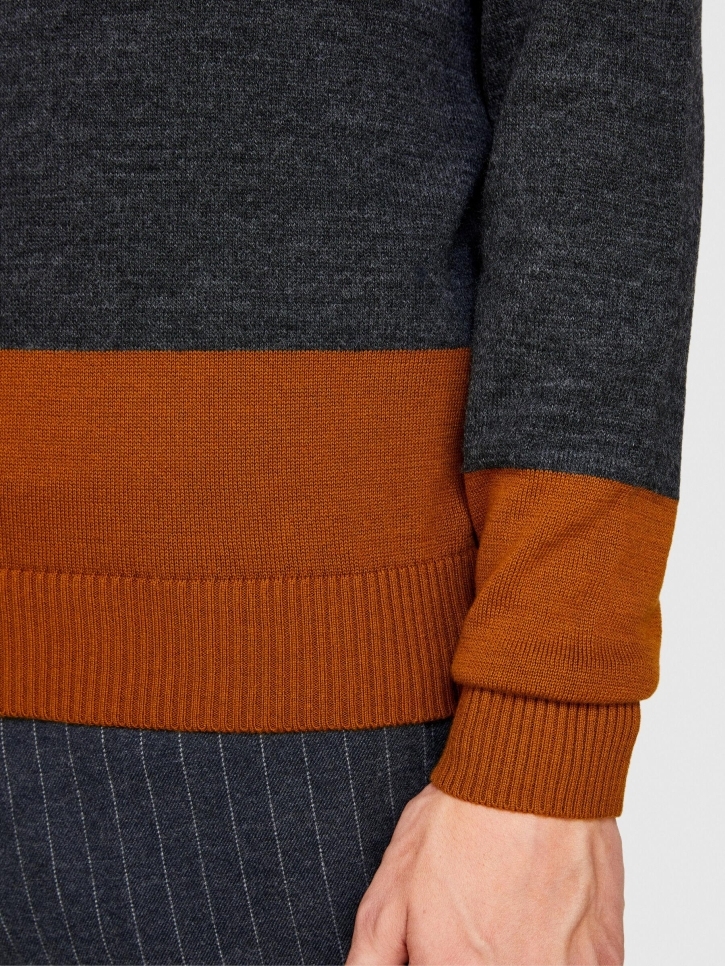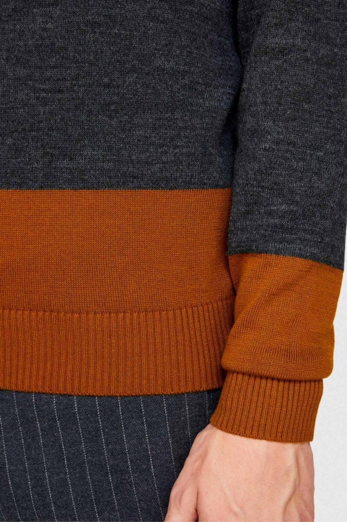 Renk Bloklu Yün Karışımlı Bisiklet Yaka Kazak Erkek Renkli Kazak - 323A117GT102H