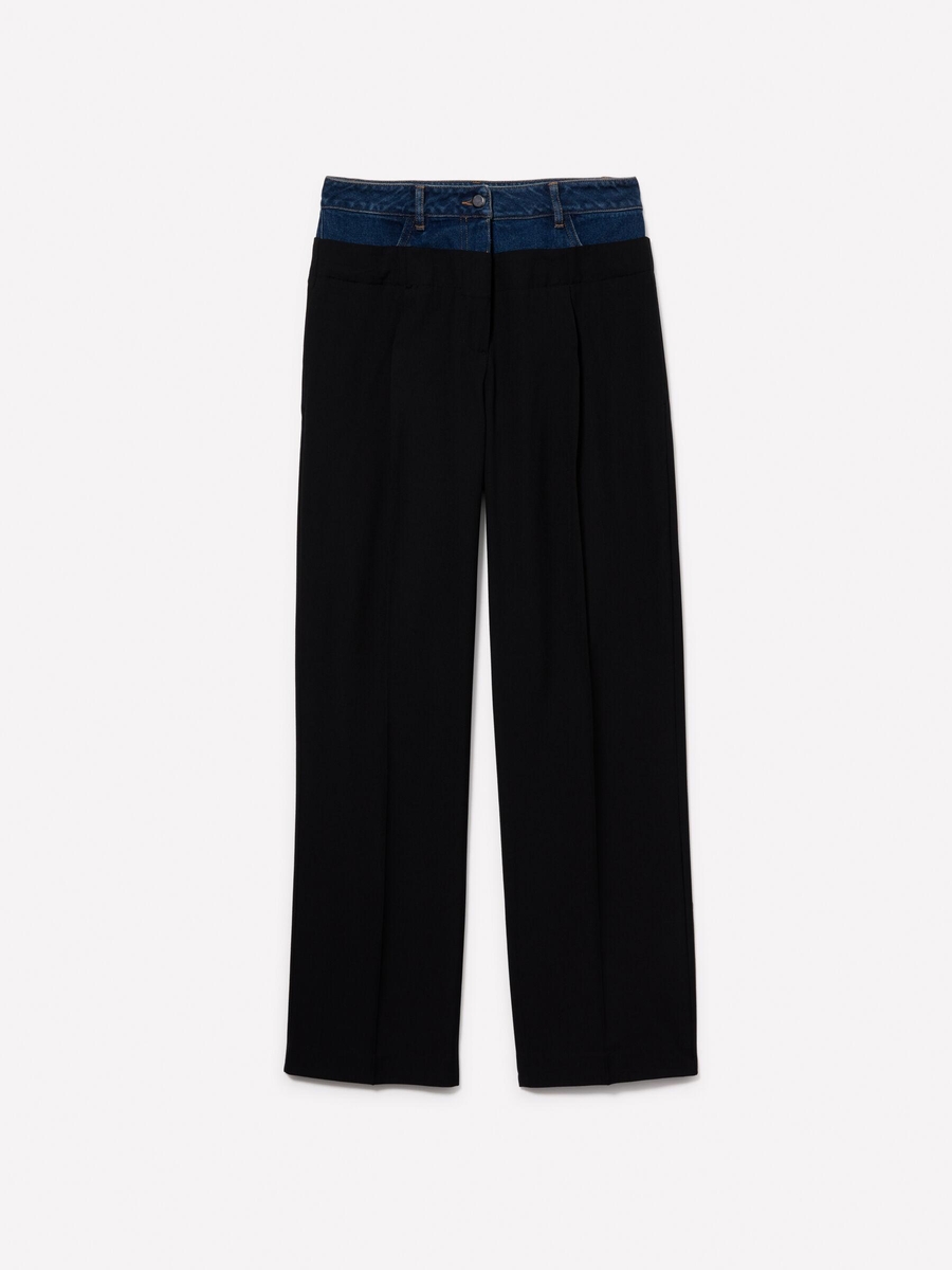 Renk Detaylı Önü Pileli Geniş Paça Pantolon Kadın Siyah Pantolon - 324A485XLF05M
