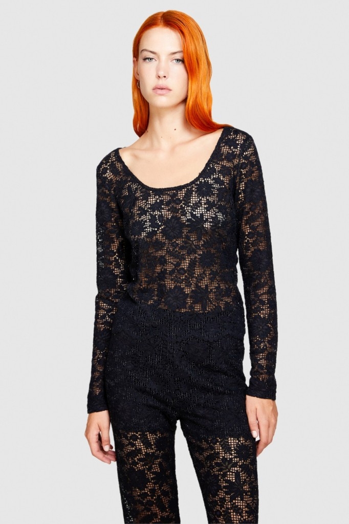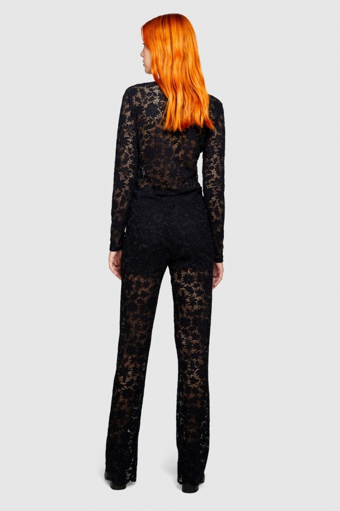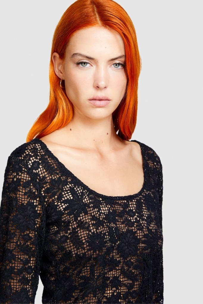 Slim Fit Dantelli Bluz Kadın Siyah Gömlek - 323A58C6LQ05D