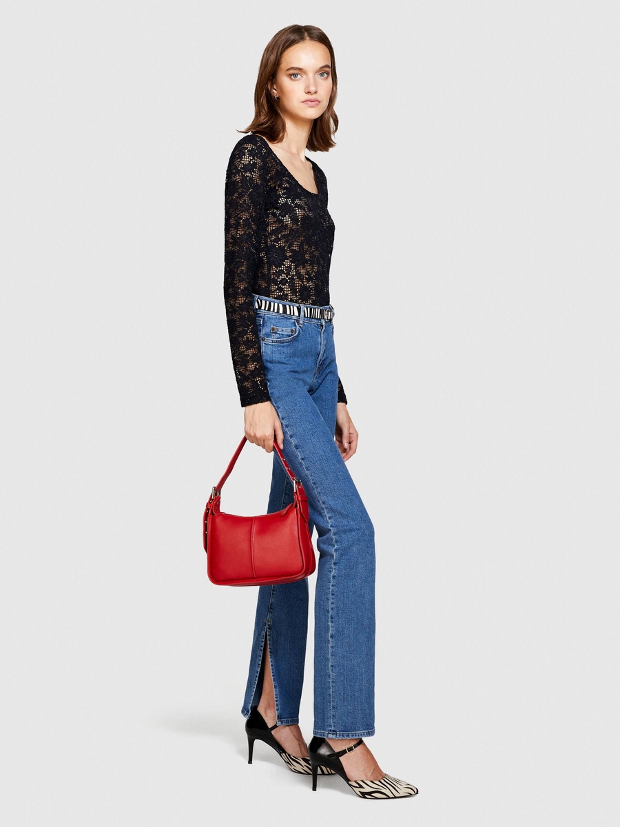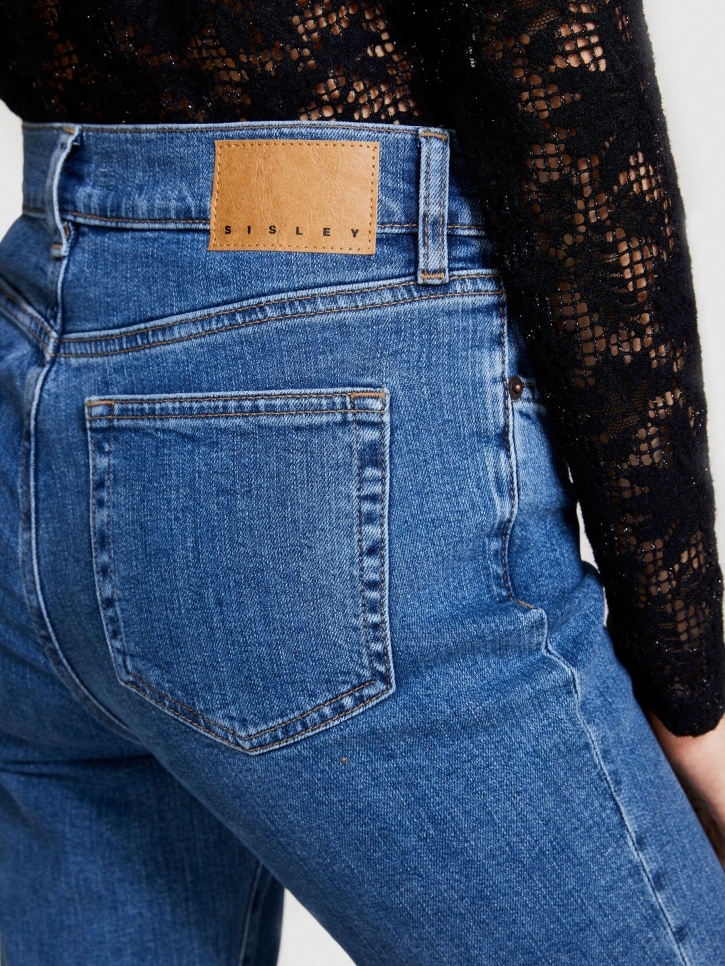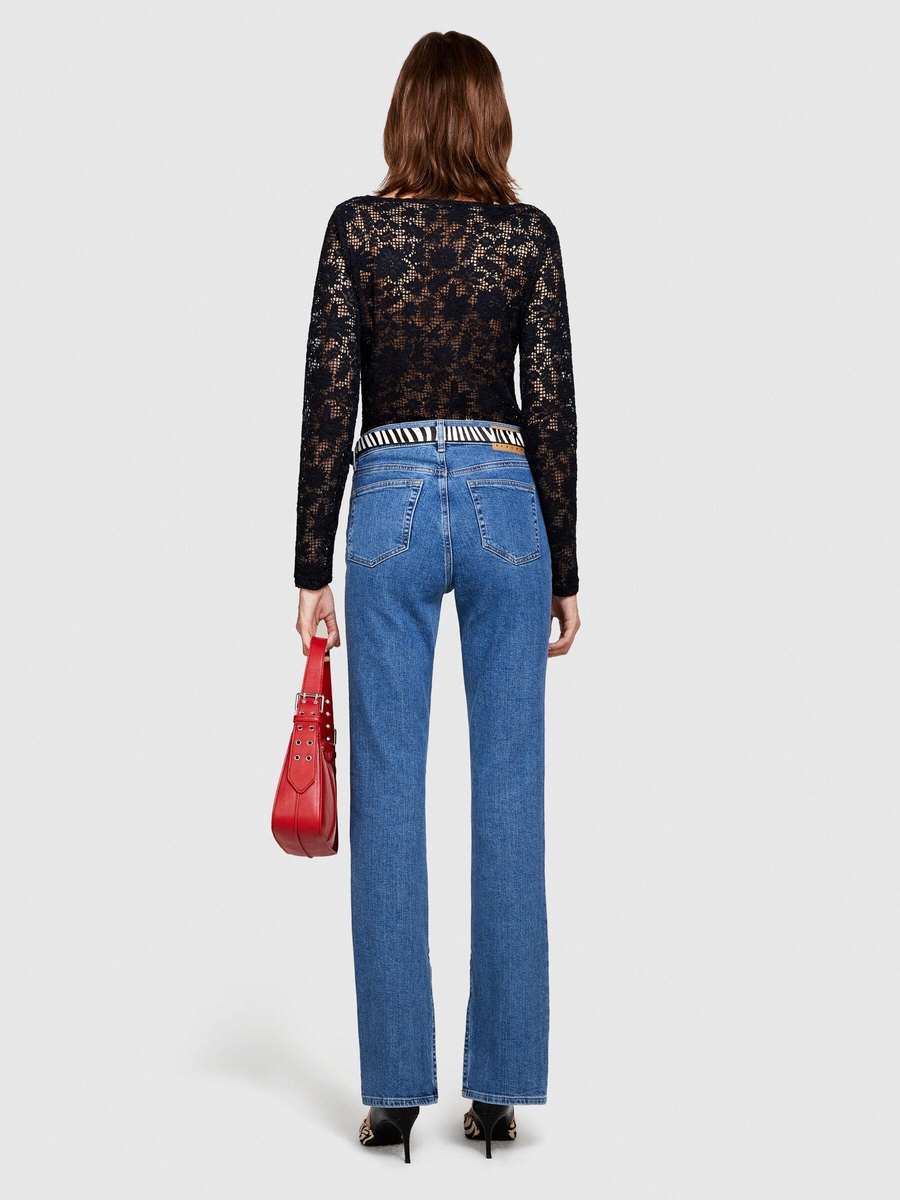 Slim Fit Yüksek Bel Paçası Yırtmaçlı Denim Pantolon Kadın Siyah T-Shirt - 323A4QWRLE02S