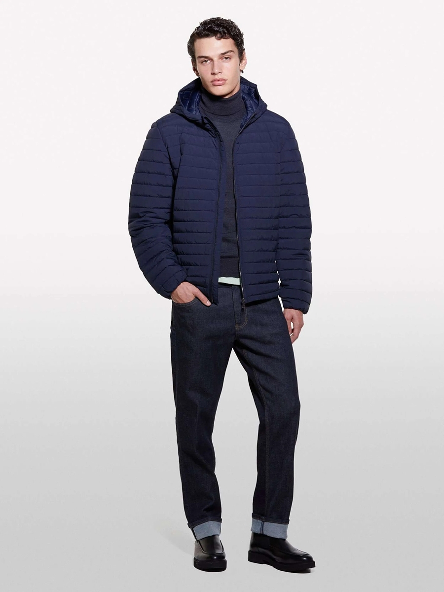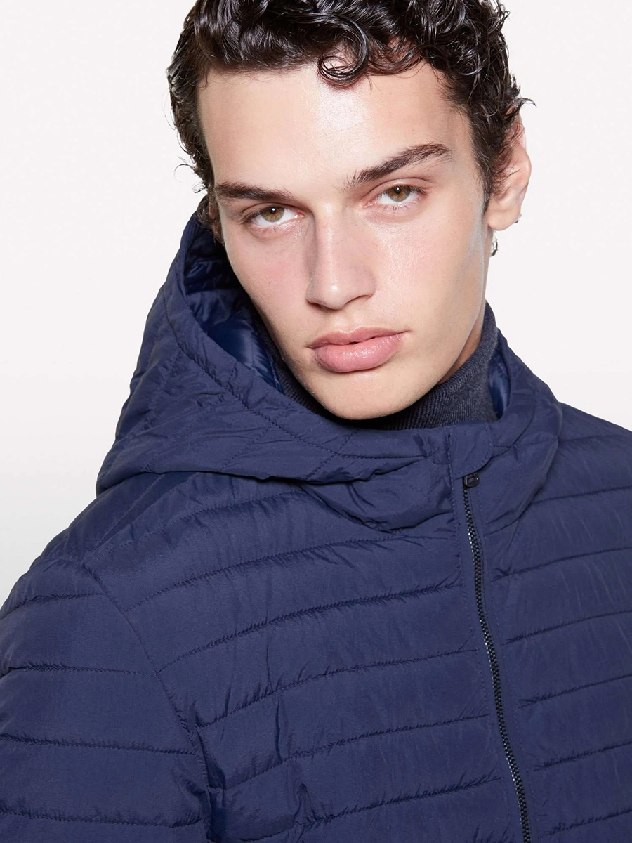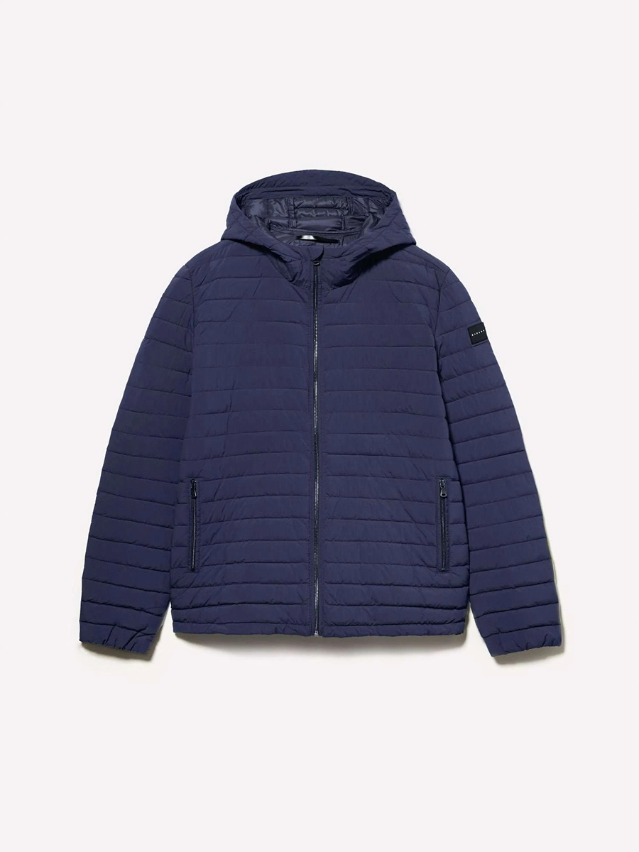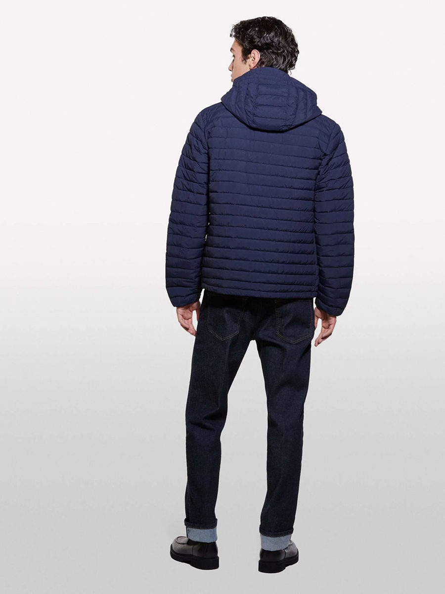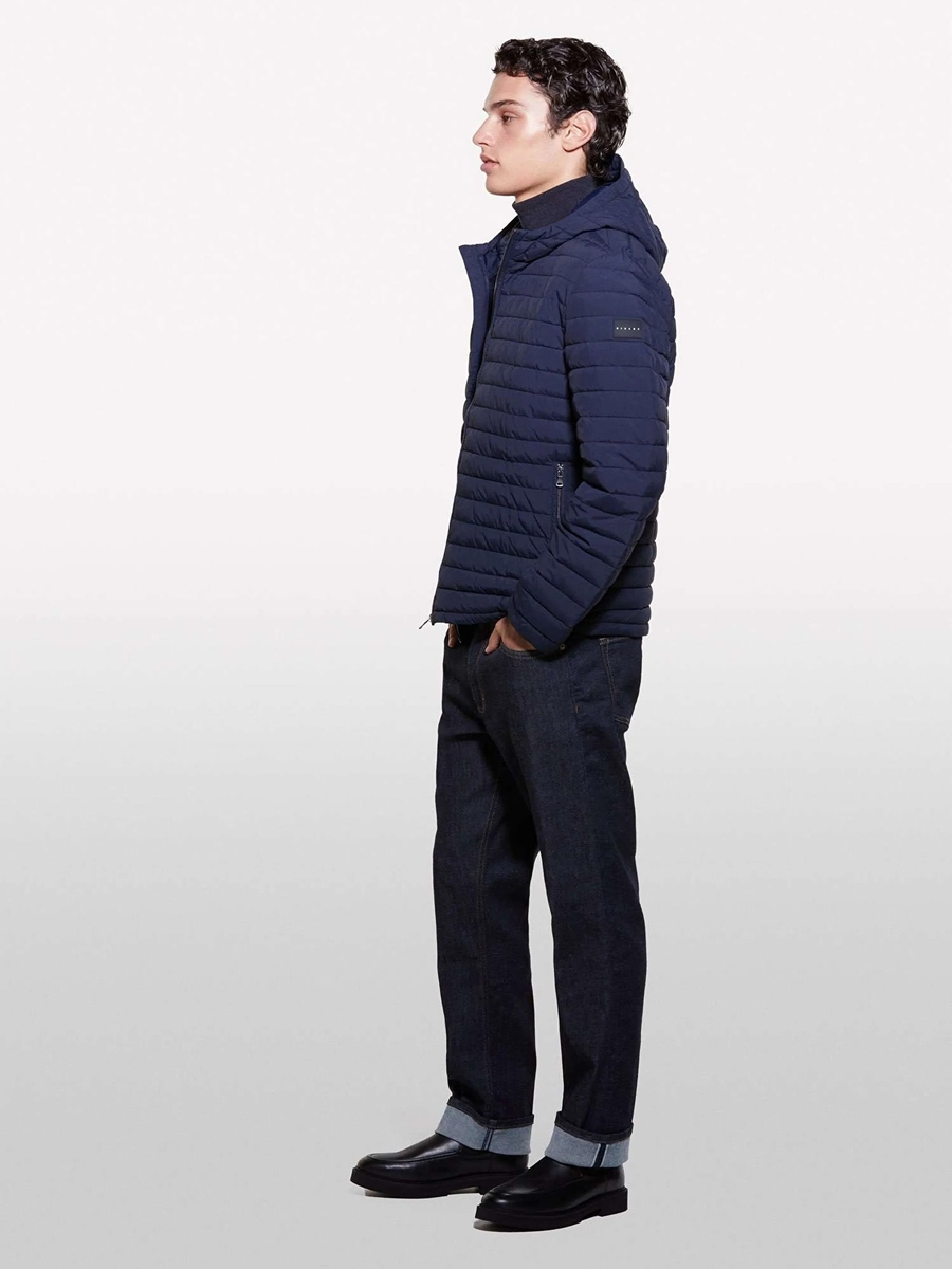 Sol Kolu Logo Detaylı Kapüşonlu Kuş Tüyü Mont Erkek Lacivert Mont - 324A21J9SN03A