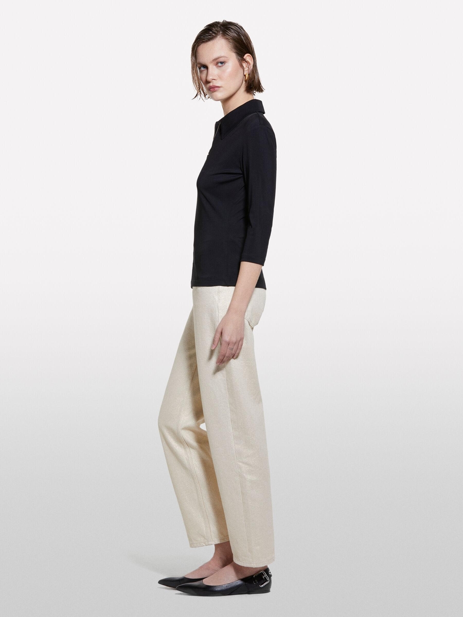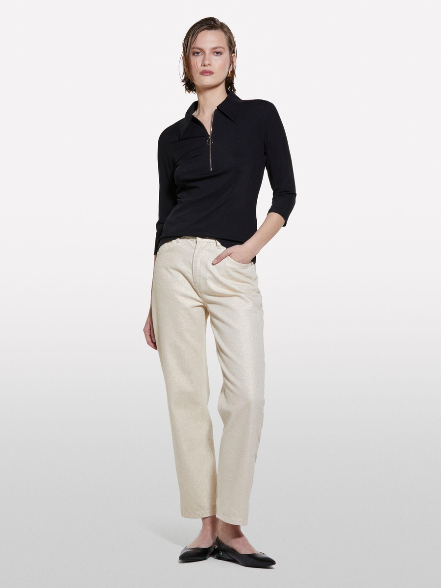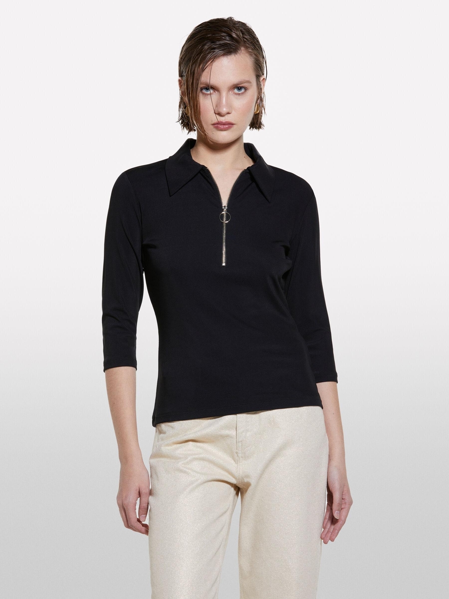 Streç Liyoselli Önü Metal Fermuarlı Bluz Kadın Siyah Bluz - 325P5X8VLQ08E