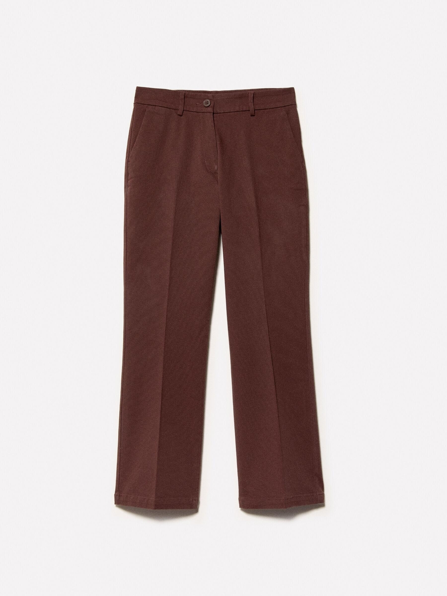 Streç Pamuklu Arkası Biyeli Cepli Pantolon Kadın kahverengi Pantolon - 325P49MALE02X