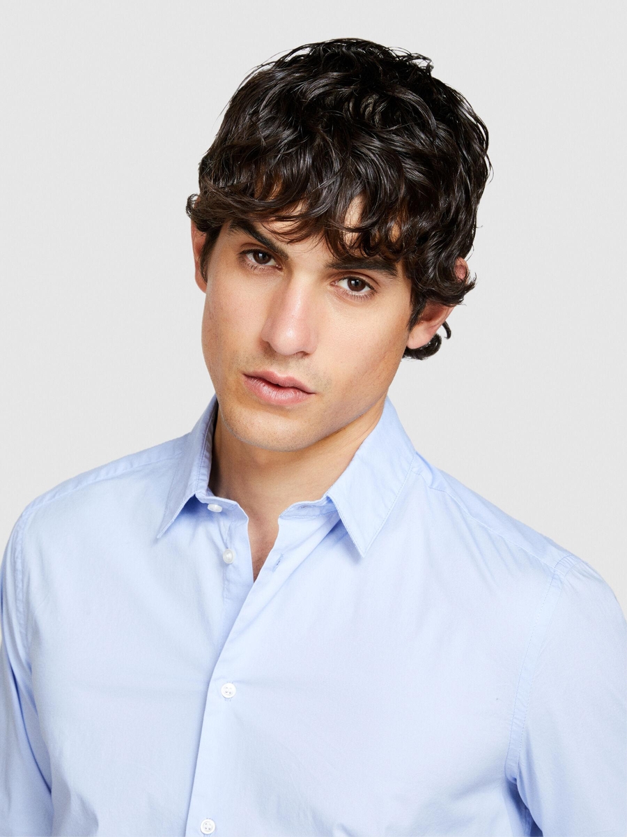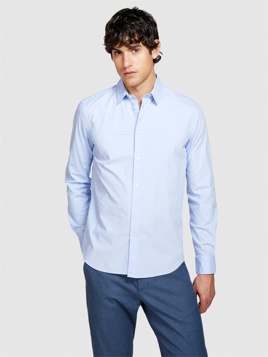 Streç Pamuklu Dar Kesim Gömlek Erkek Mavi Gömlek - 324P5CNX5QL19