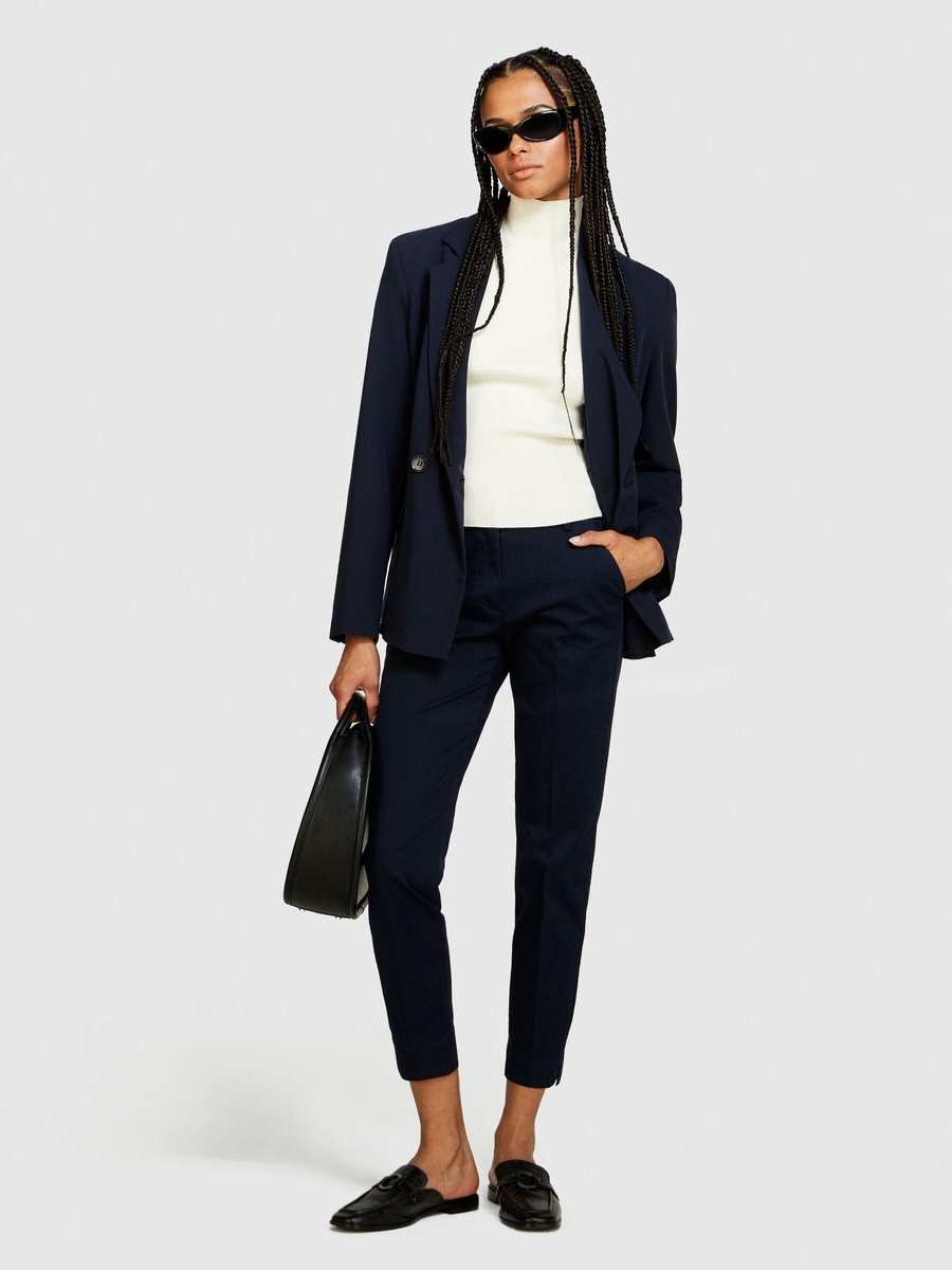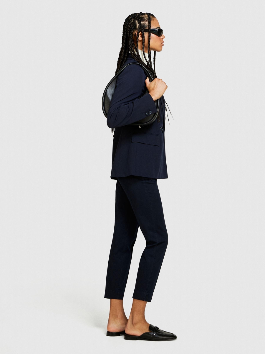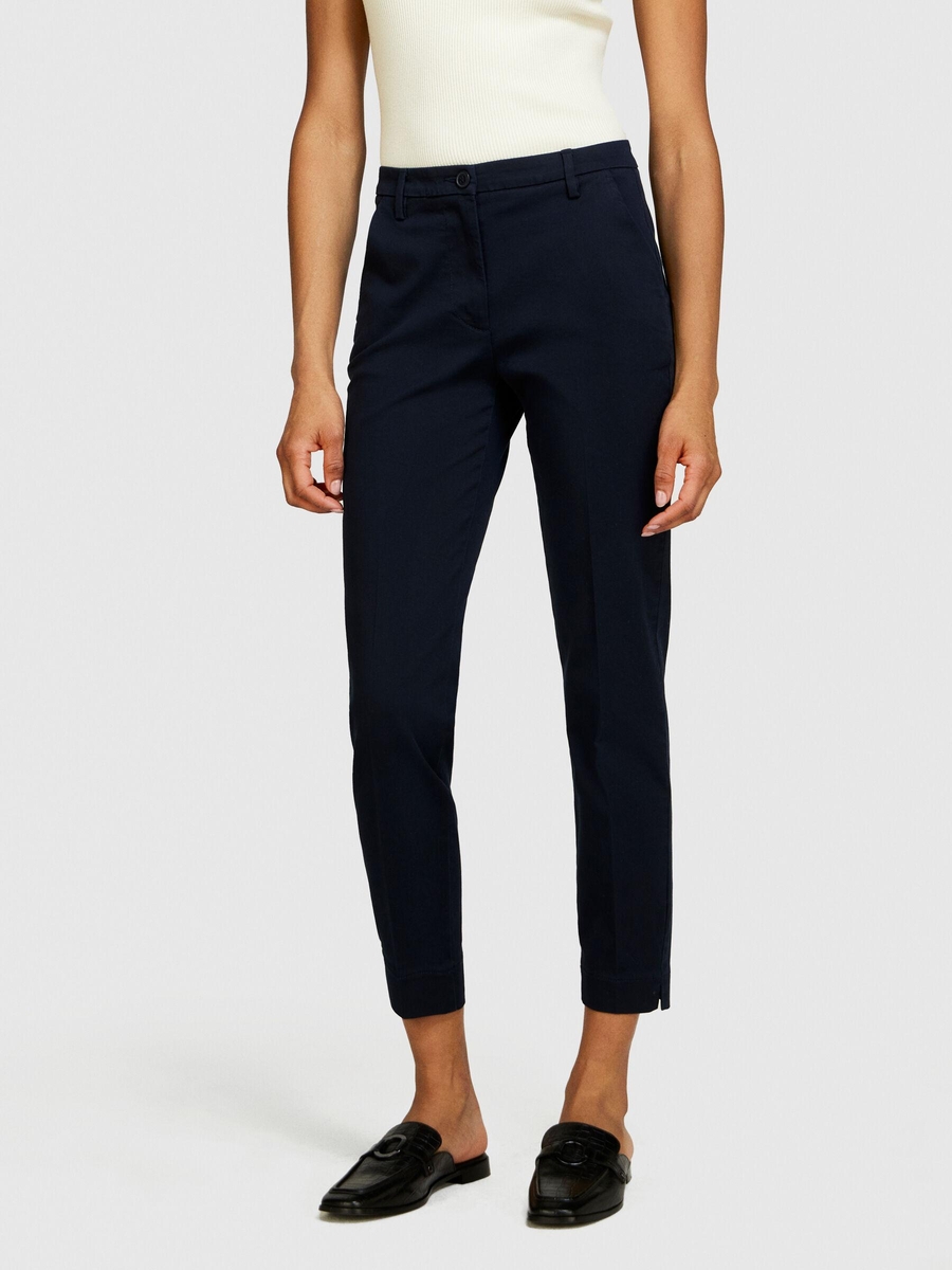 Streç Pamuklu Kemer Delikli Normal Bel Chino Pantolon Kadın Lacivert Pantolon - 324P4BYW55AH6