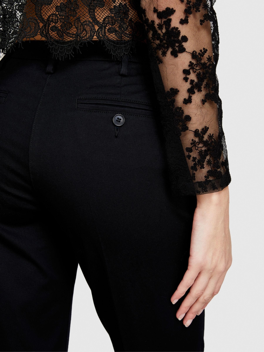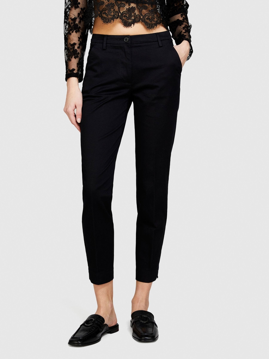 Streç Pamuklu Kemer Delikli Normal Bel Chino Pantolon Kadın Siyah Pantolon - 324P4BYW55AH6