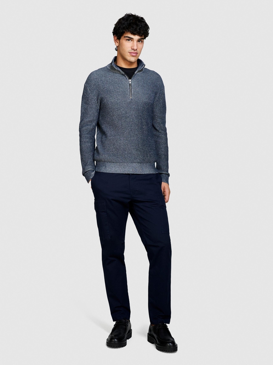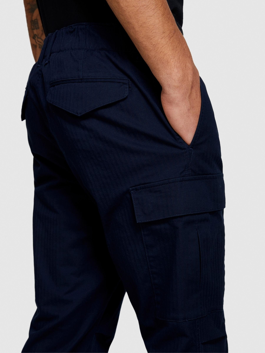 Streç Pamuklu Kemer Delikli Yama Cepli Dar Paça Pantolon Erkek Lacivert Pantolon - 324P4H2FSF03P