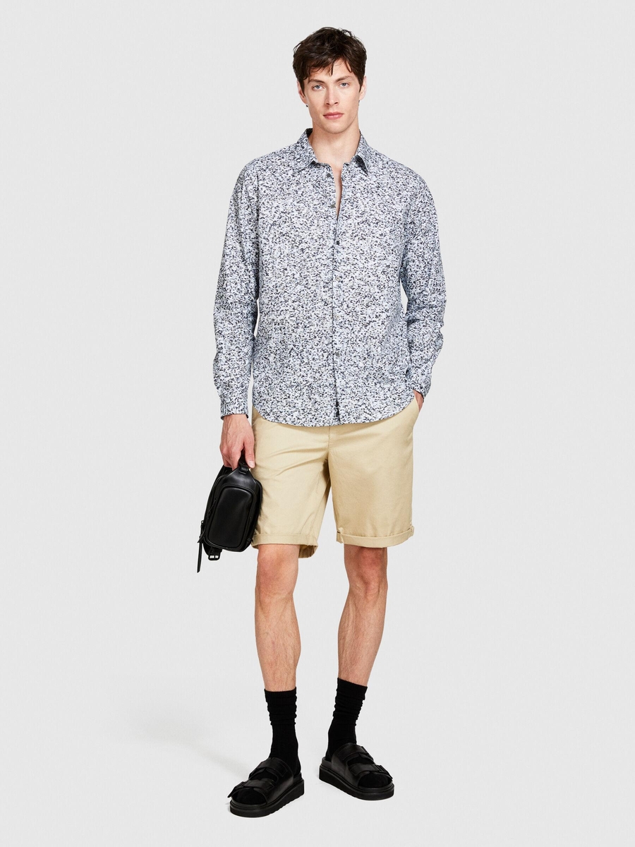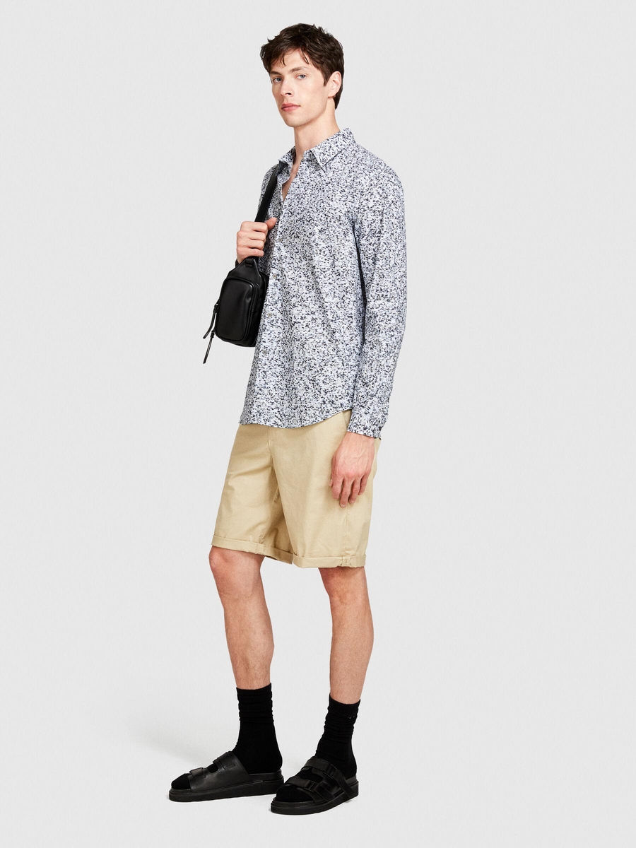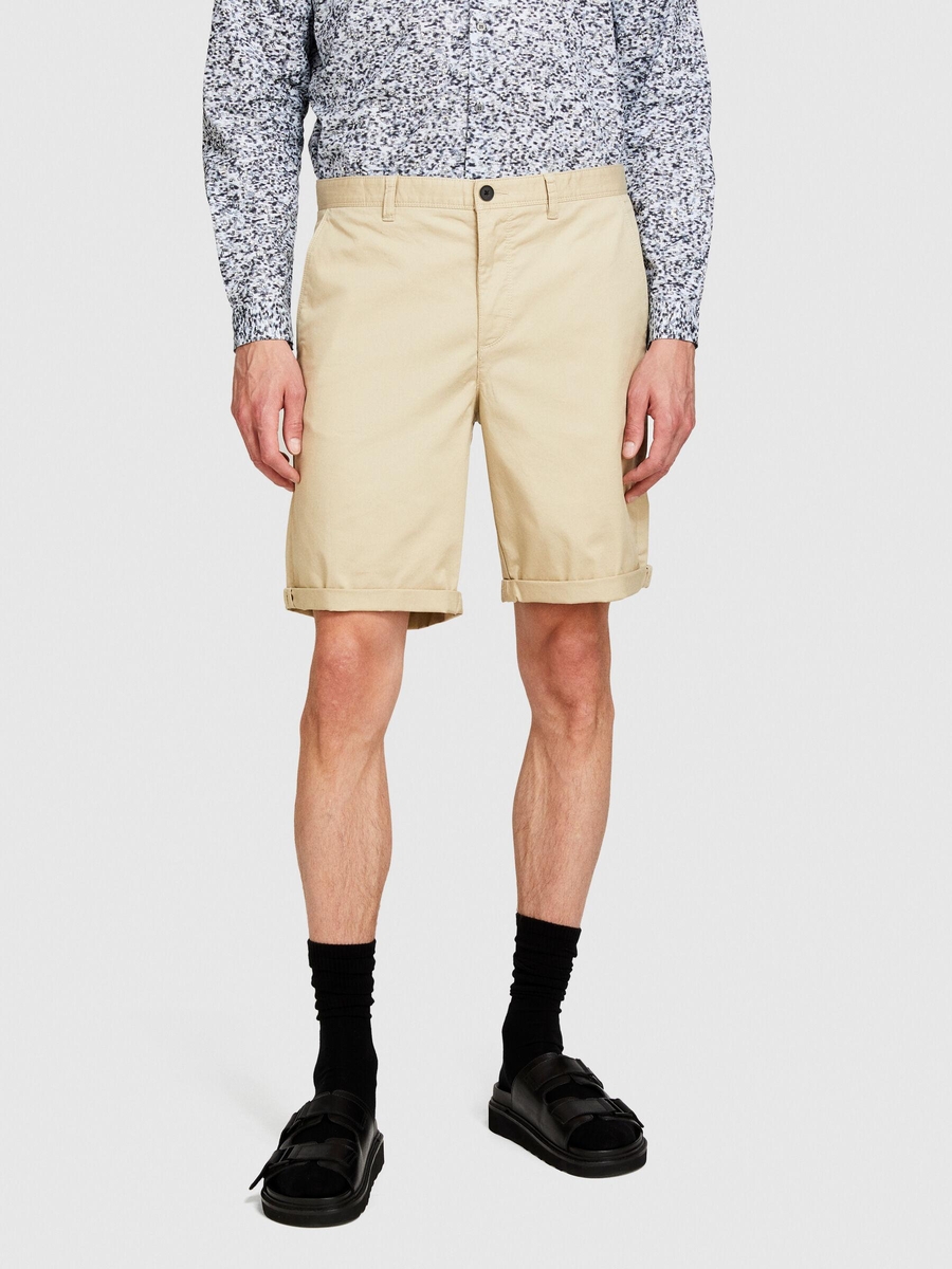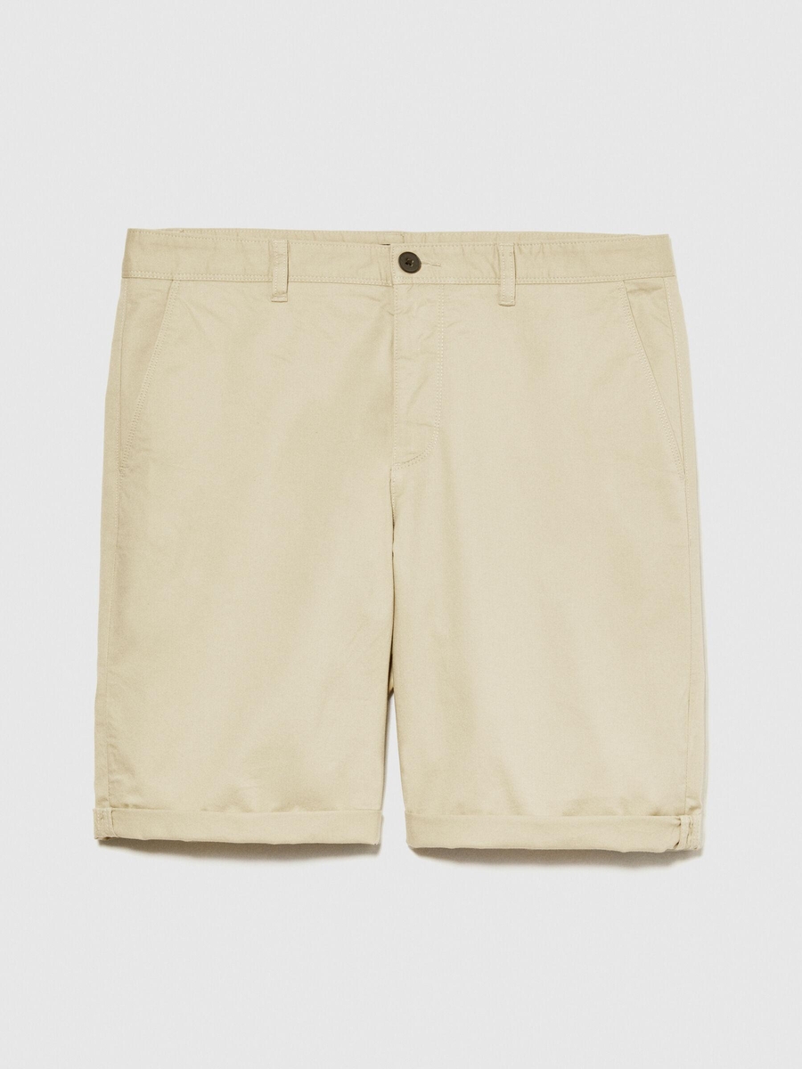 Streç Pamuklu Kumaştan Kemer Delikli Kıvrık Paça Kısa Şort Erkek Bej Şort - 324P4TEQS900Z