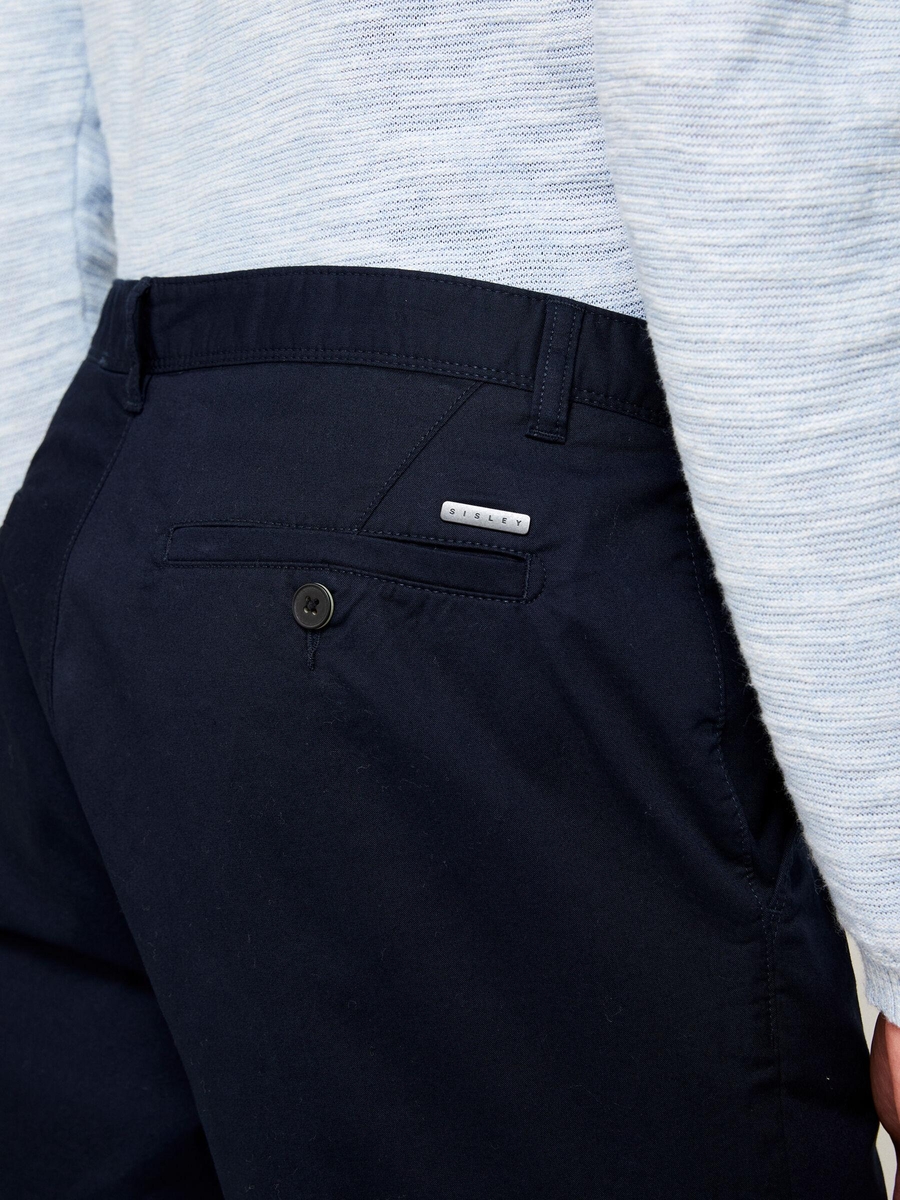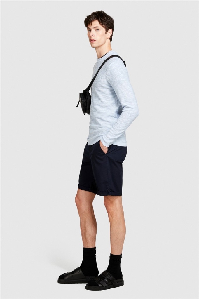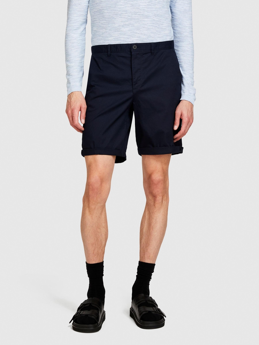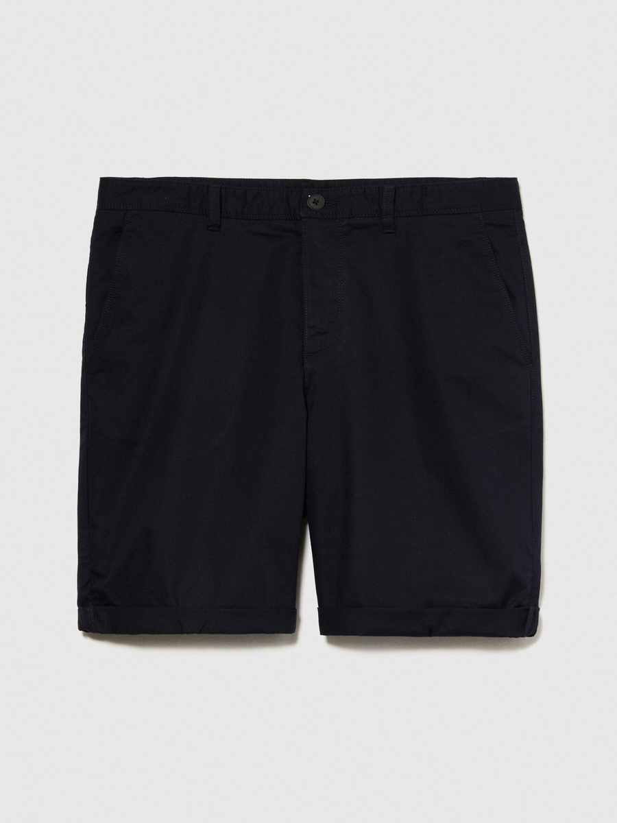 Streç Pamuklu Kumaştan Kemer Delikli Kıvrık Paça Kısa Şort Erkek Lacivert Şort - 324P4TEQS900Z
