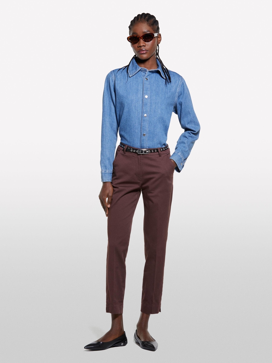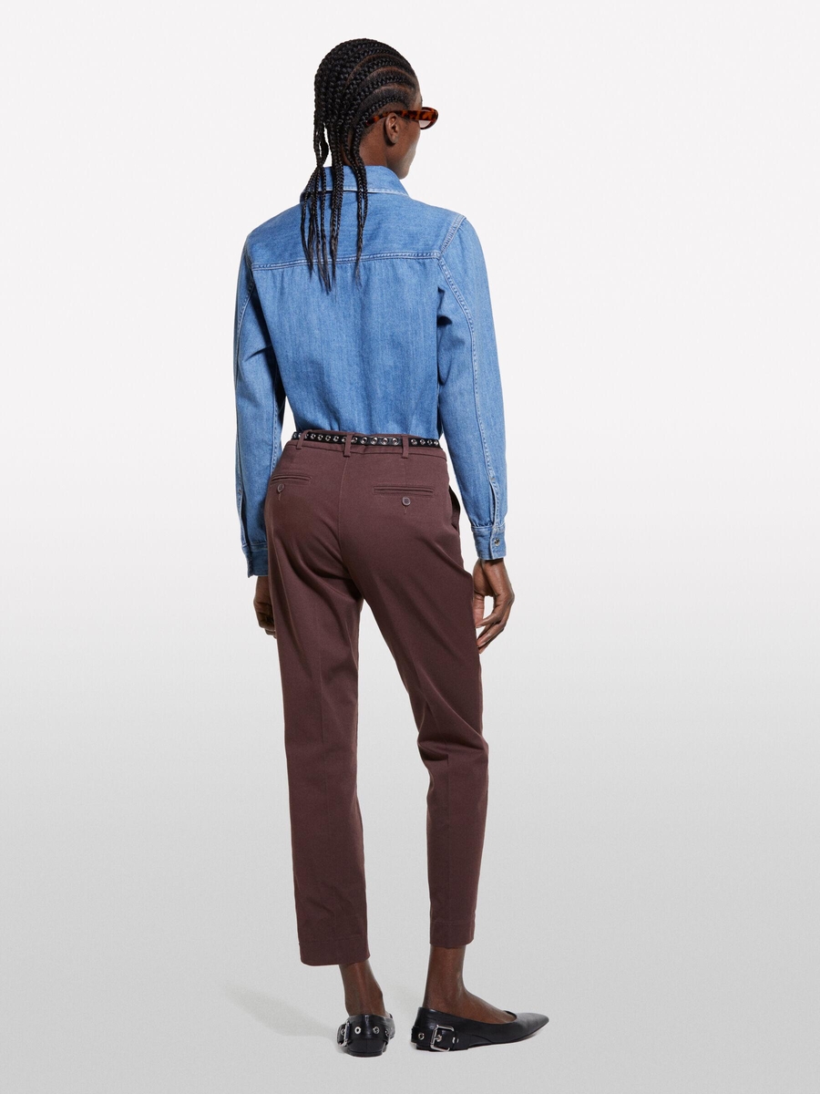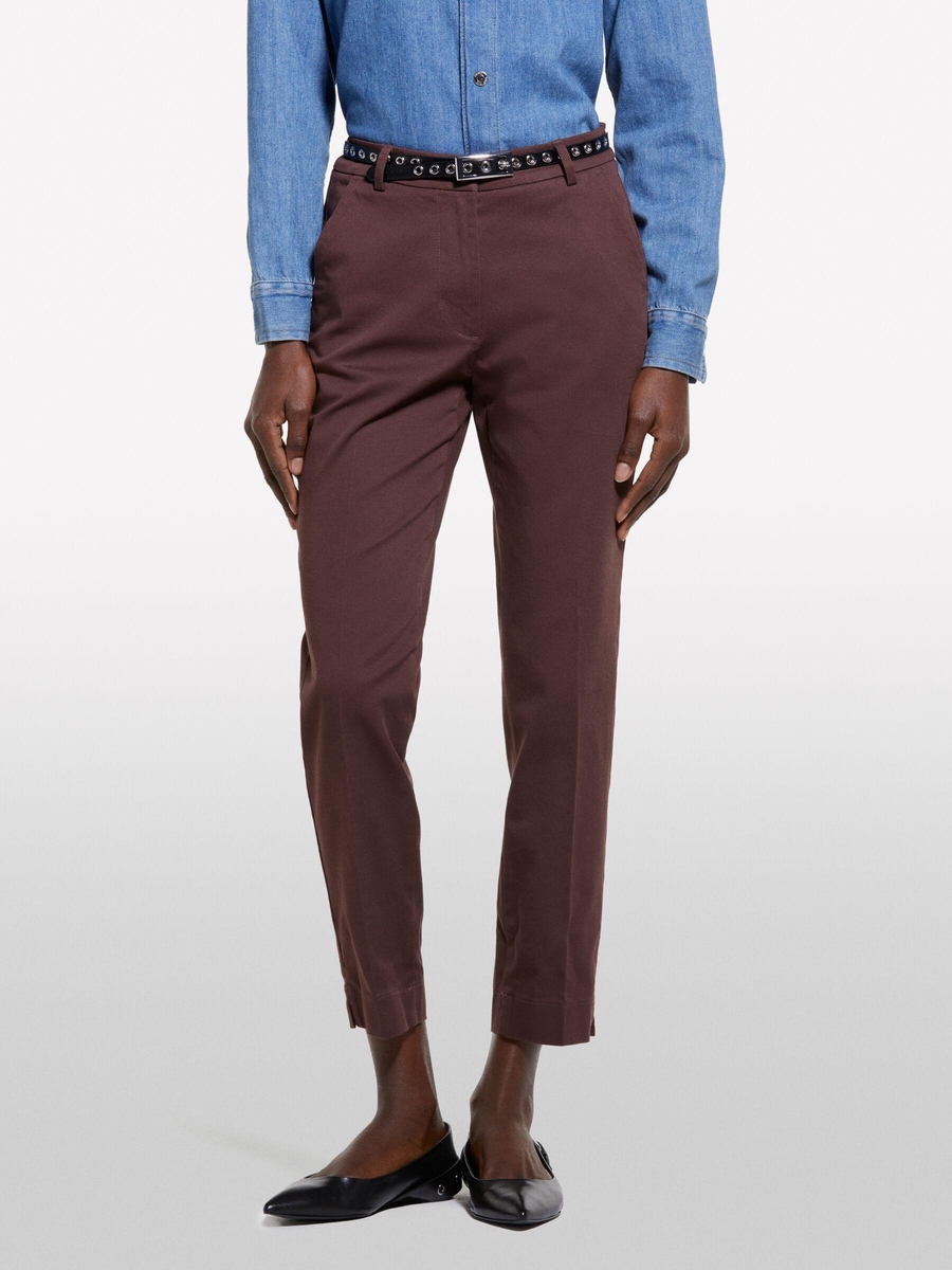 Streç Pamuklu Normal Bel Chino Pantolon Kadın kahverengi Pantolon - 325P4BYW55AH6