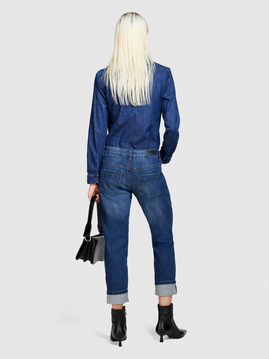 Streç Pamuklu Normal Bel Paça Detaylı Denim Pantolon Kadın Siyah Mix Pantolon - 324P44ZALE01J