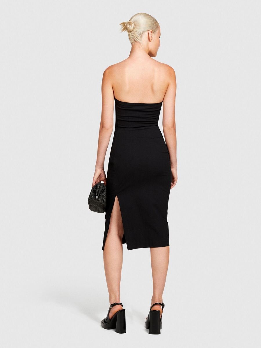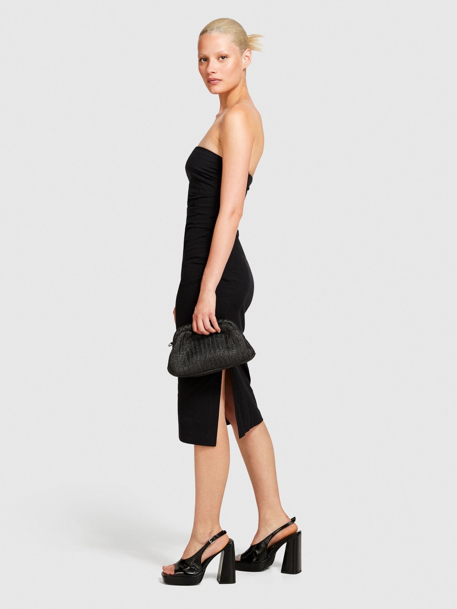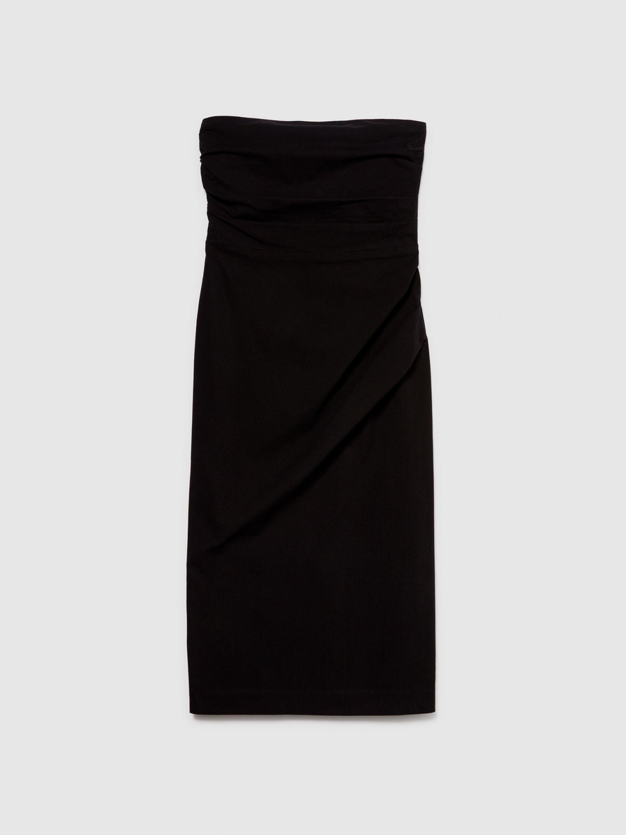 Streç Pamuklu Önü Büzgülü Dar Kesim Straplez Elbise Kadın Siyah Elbise - 324P4ORPLV05M