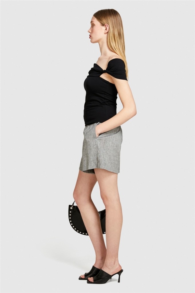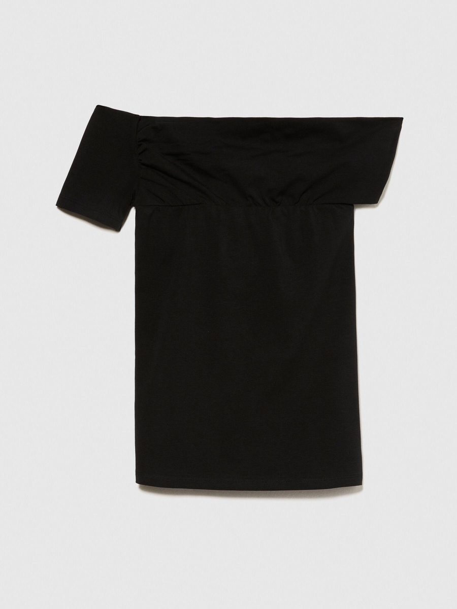 Streç Pamuklu Önü Detaylı Omzu Açık T-Shirt Kadın Siyah T-Shirt - 324P3X23L400P