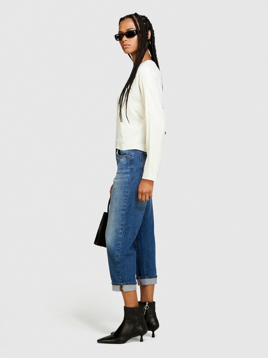 Streç Pamuklu Yüksek Bel Kıvrık Paça Denim Pantolon Kadın Siyah Mix Pantolon - 324P47DF575O7
