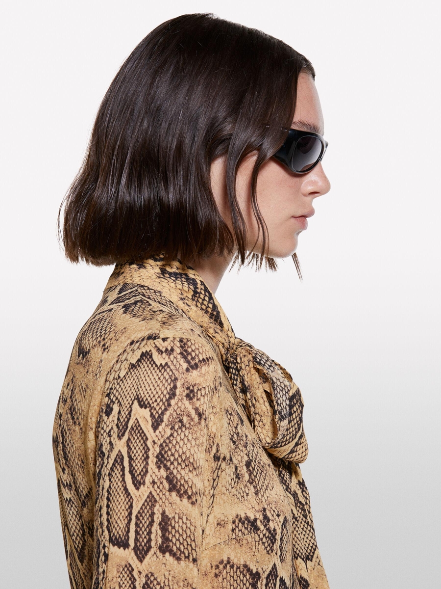 Tamamı Baskılı Bağlama Detaylı Etek Ucu Asimetrik Elbise Kadın Koyu Sarı Desenli Elbise - 324A4YBMLV065
