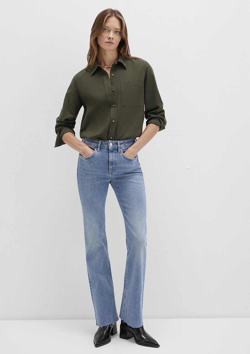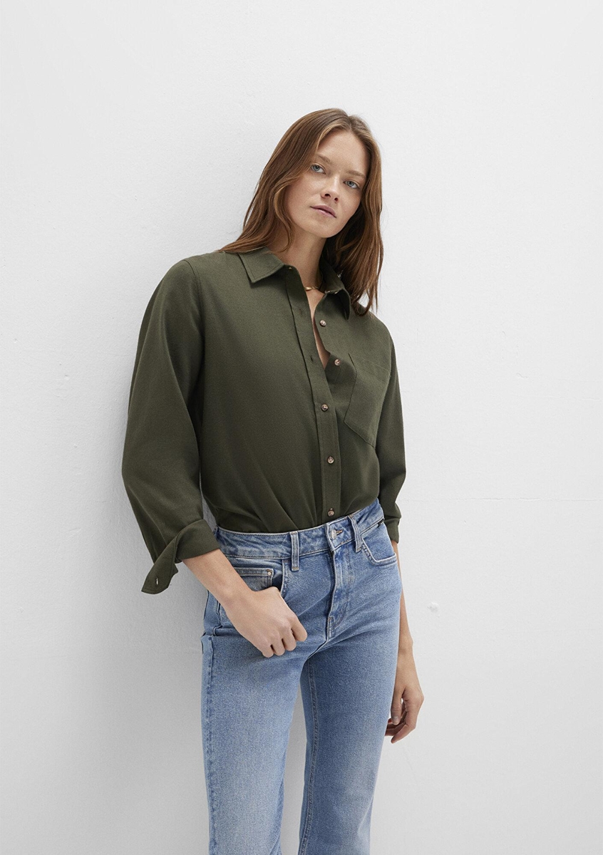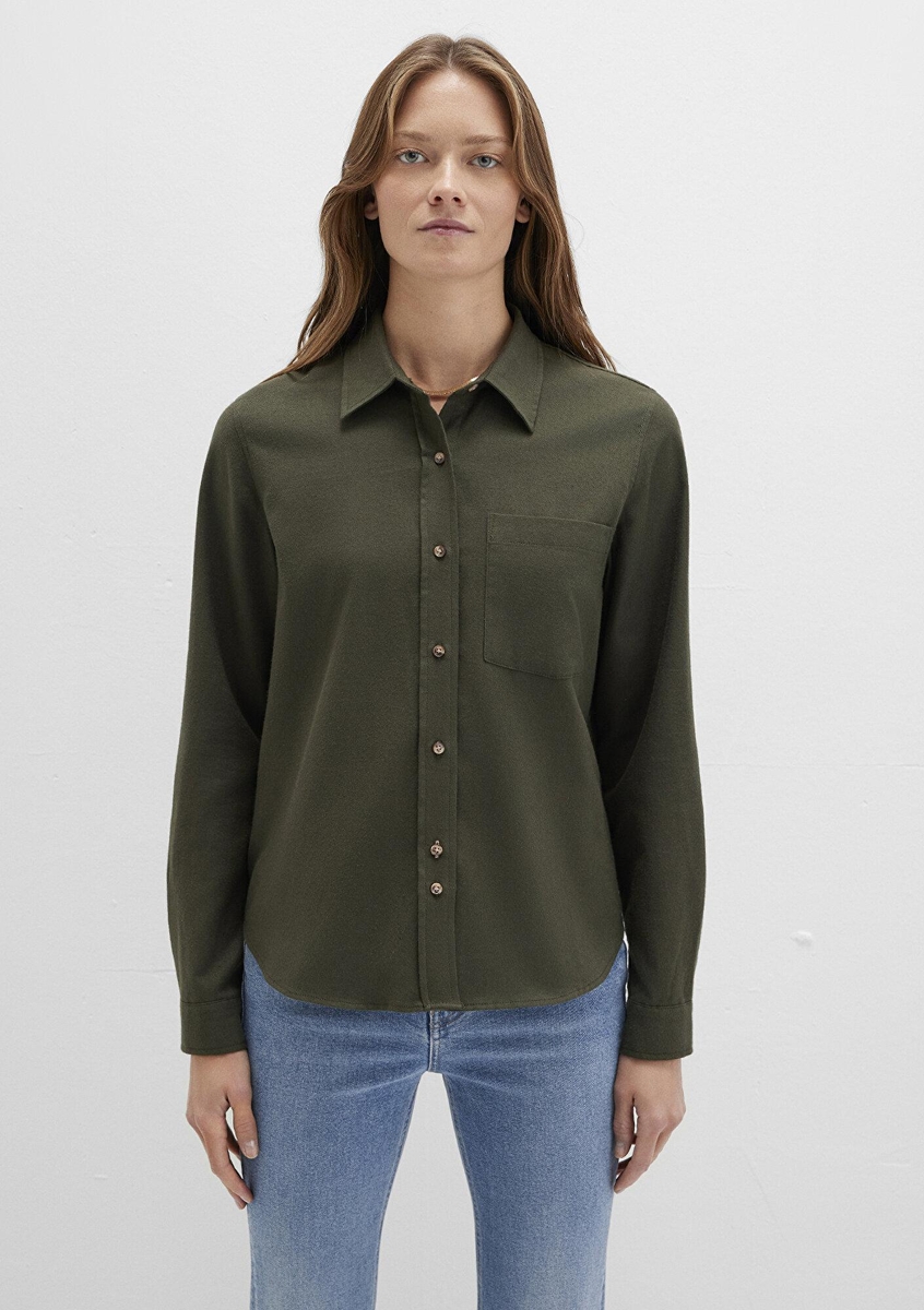 UZUN KOLLU DOKUMA GÖMLEK Kadın Yeşil Gömlek - M1211285