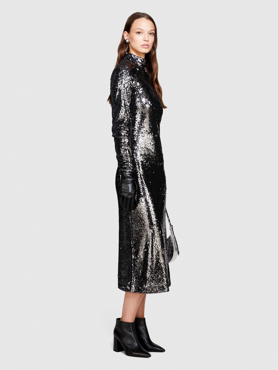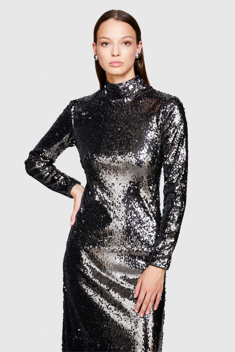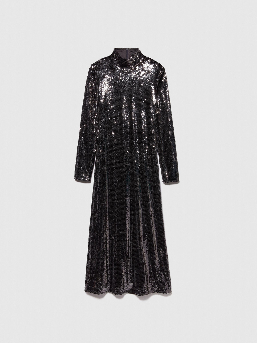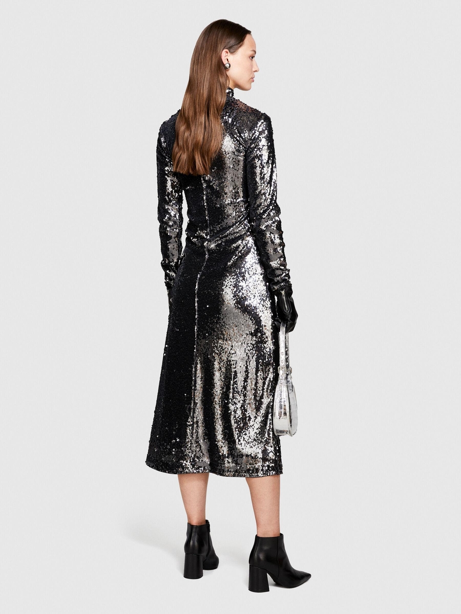 Uzun Kollu Parlak Elbise Kadın Siyah Elbise - 323A4TMZLV055