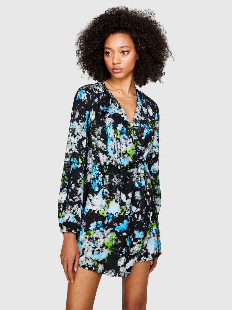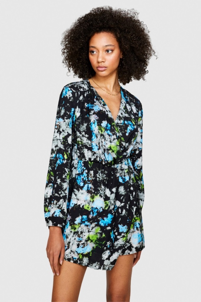 V Yaka Desenli Hafif Dökümlü Uzun Kollu Elbise Kadın Mor Elbise - 323A42WELV04I