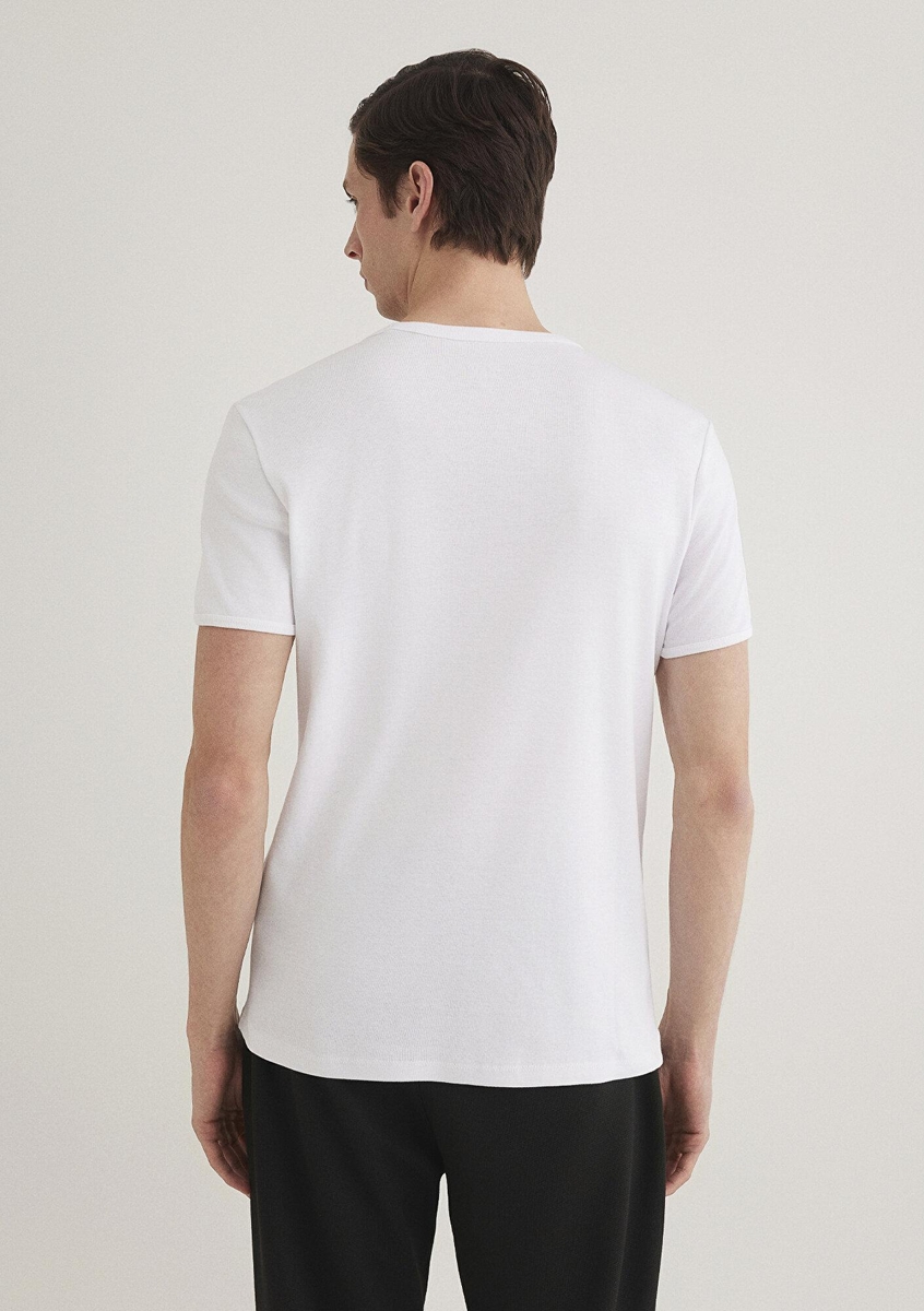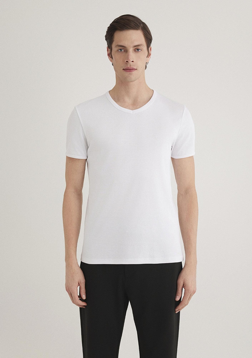 V YAKA TİŞÖRT Erkek Beyaz Basic T-Shirt - M063748