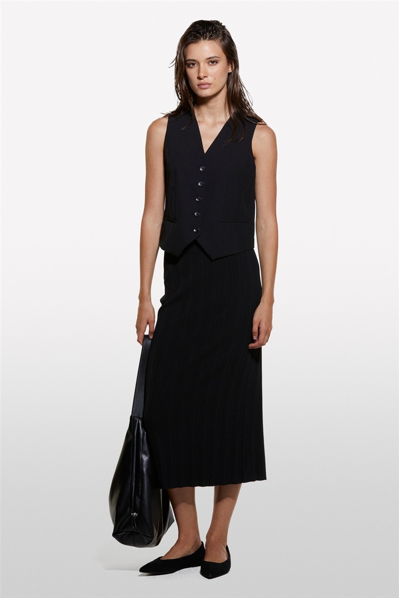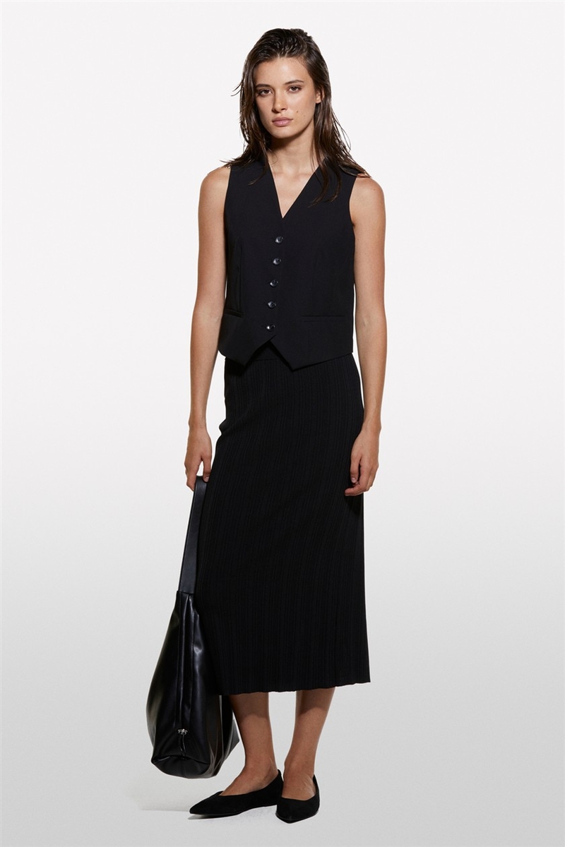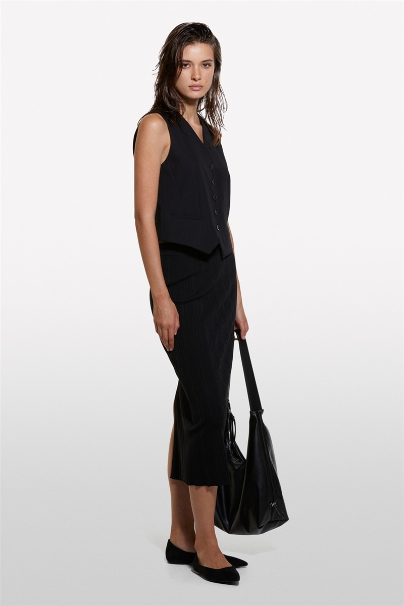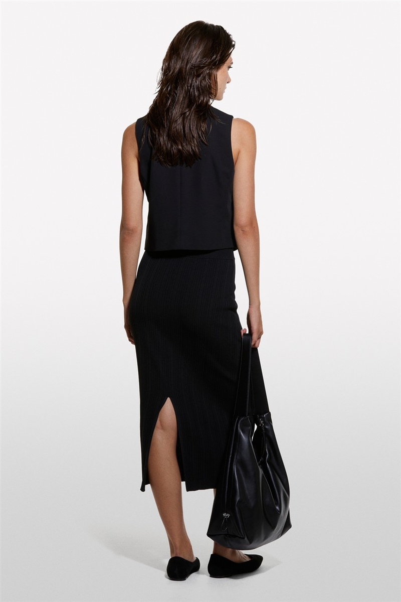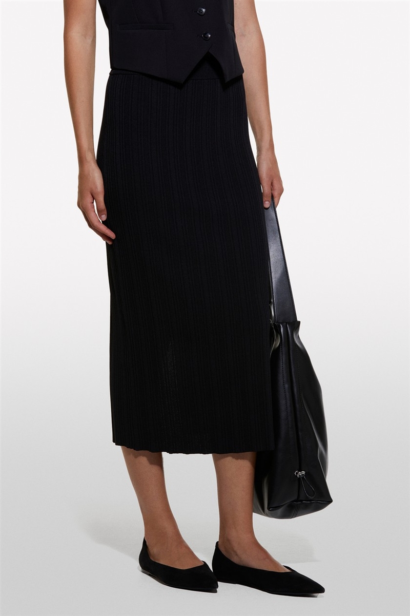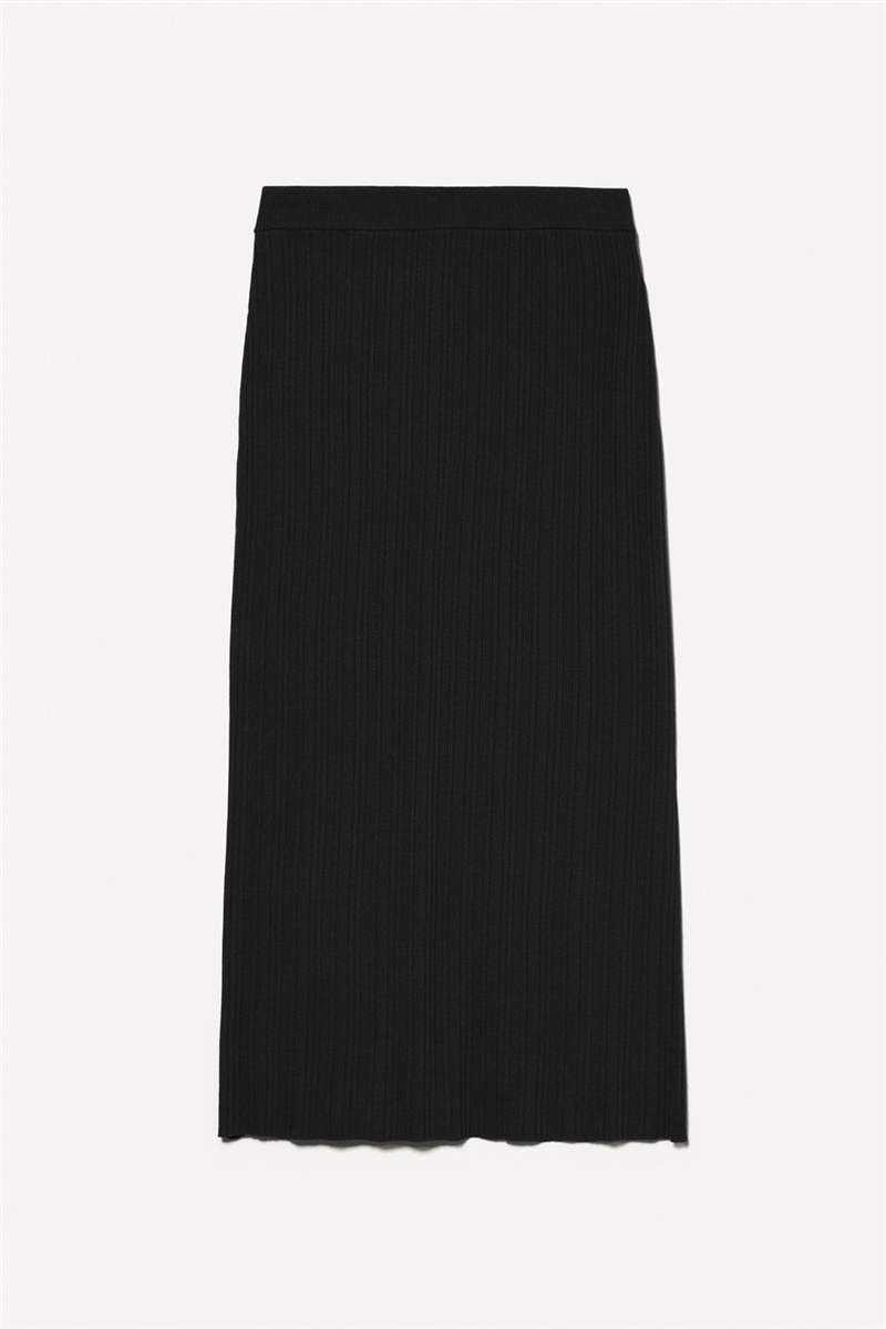 Viskoz Karışımlı Arkası Derin Yırtmaçlı Fitilli Kalem Etek Kadın Siyah Etek - 324A1WTHM000C