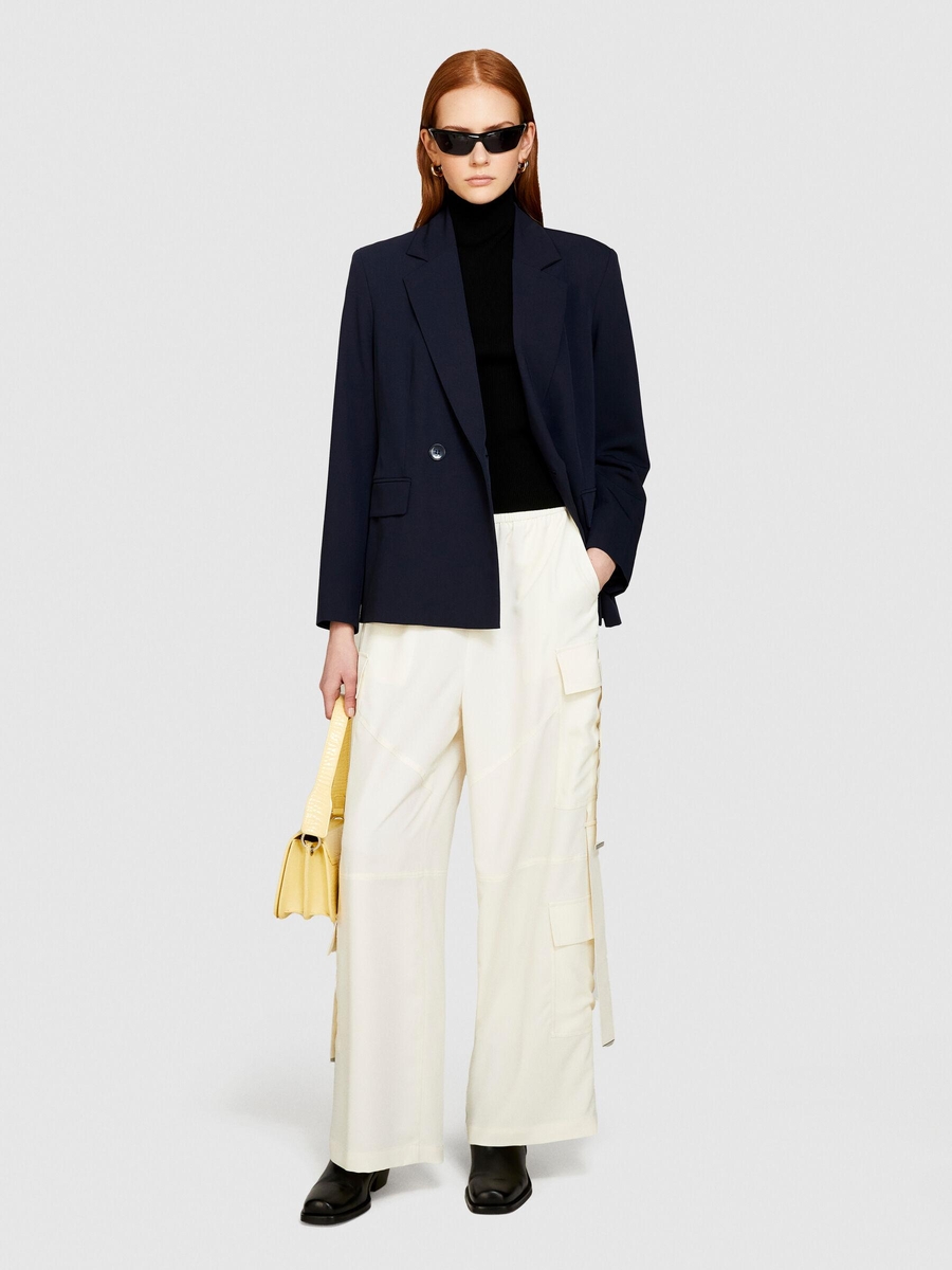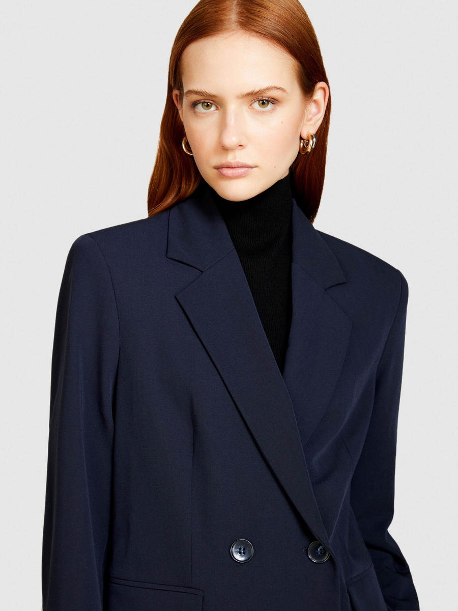 Viskoz Karışımlı Biyeli Cep Detaylı Ceket Kadın Lacivert Ceket - 324P2KVXLW01R
