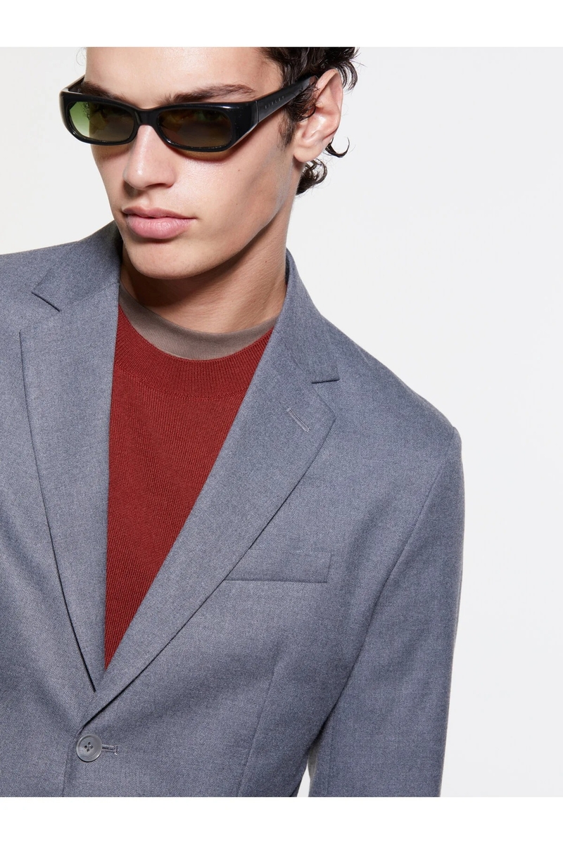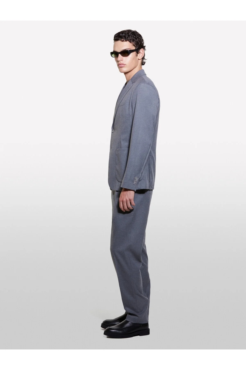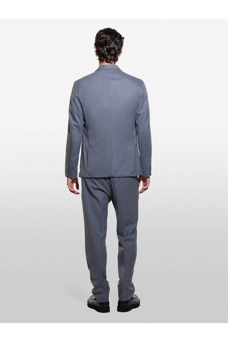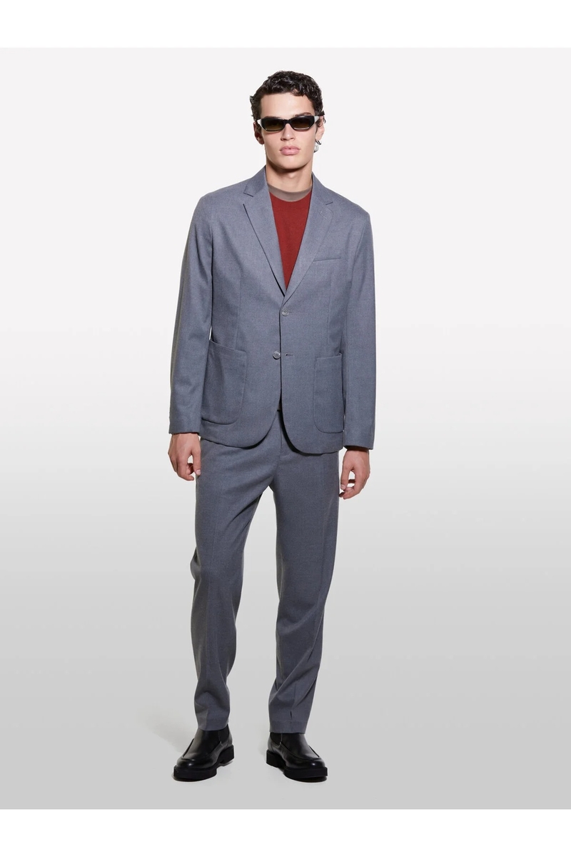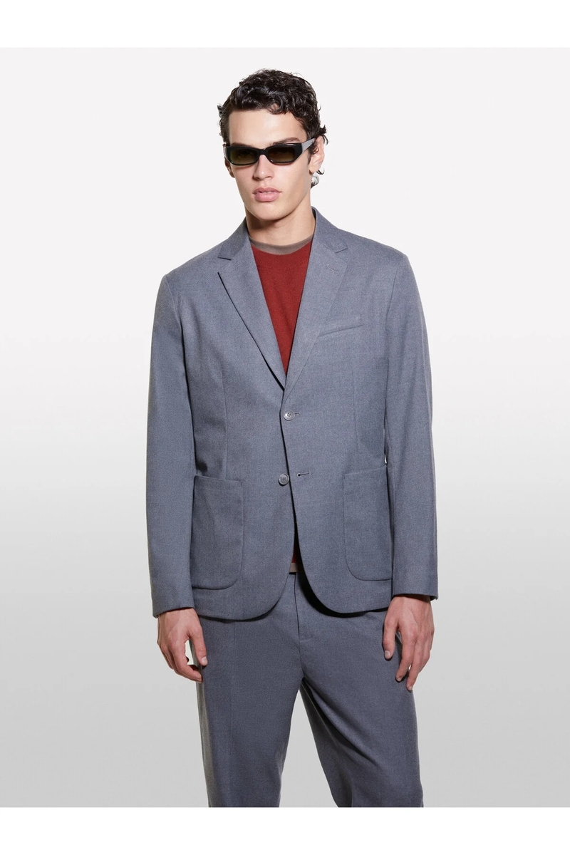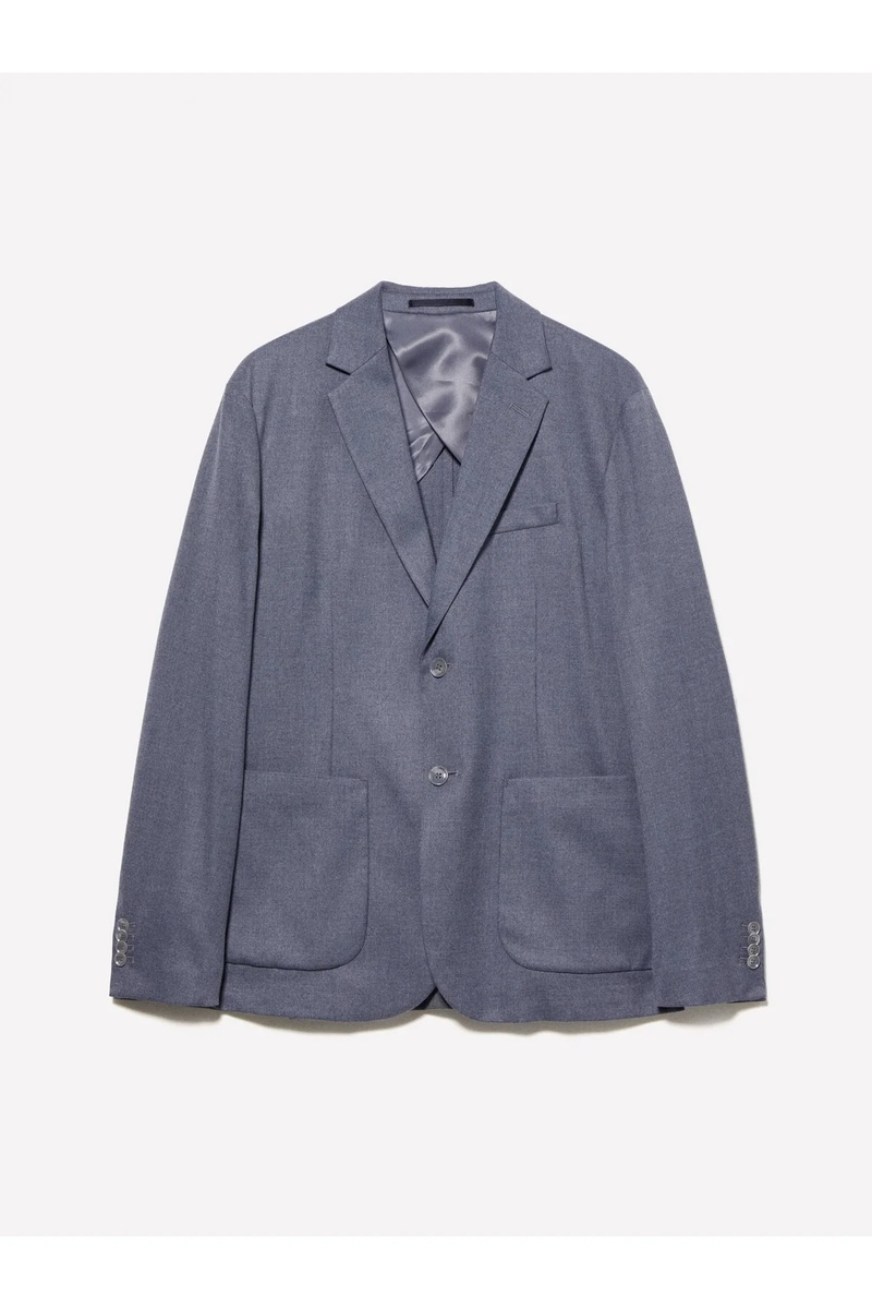 Viskoz Karışımlı Cepli İki Düğmeli Sivri Yaka Ceket Erkek Mavi Ceket - 324A270USW023