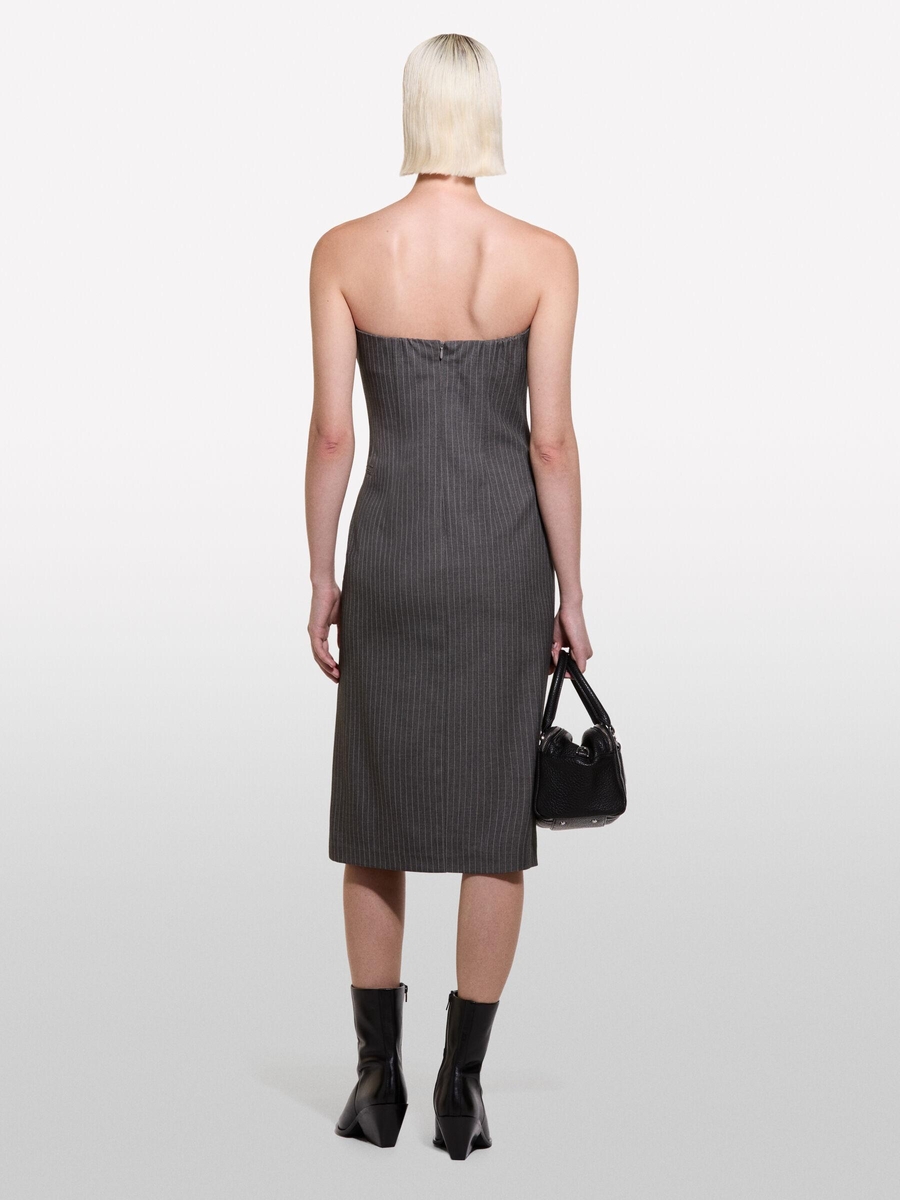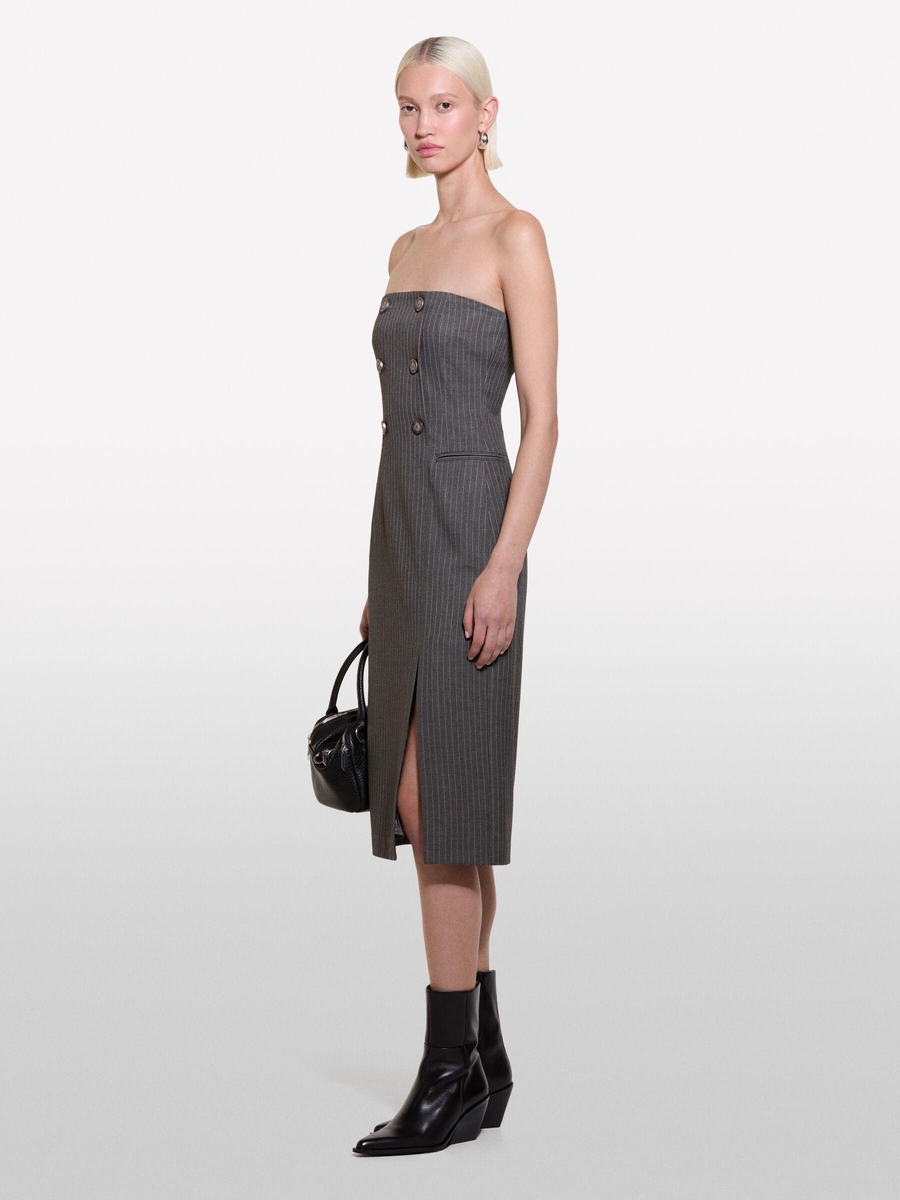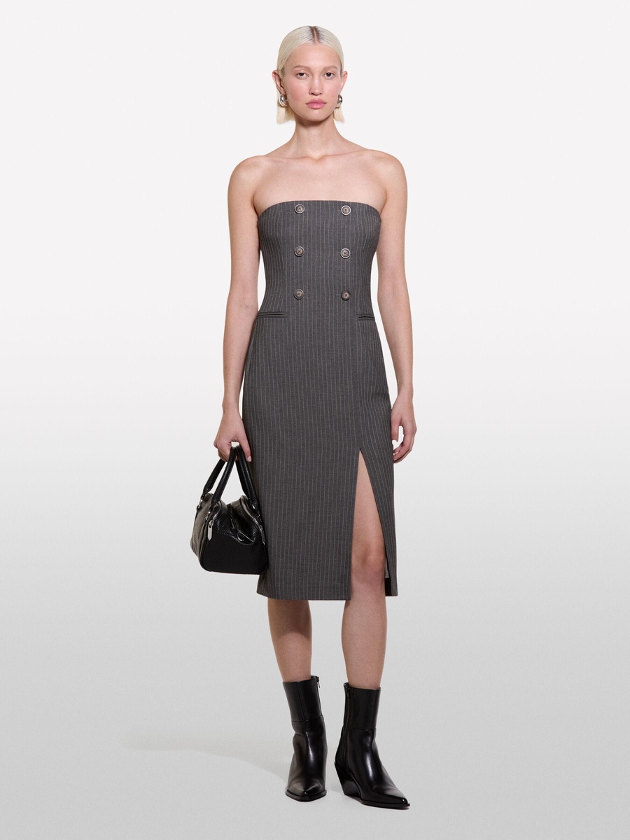 Viskoz Karışımlı Düğme Detaylı Önü Yırtmaçlı Straplez Elbise Kadın Haki Mix Elbise - 324A4OPDLV06L