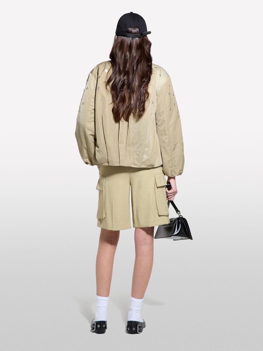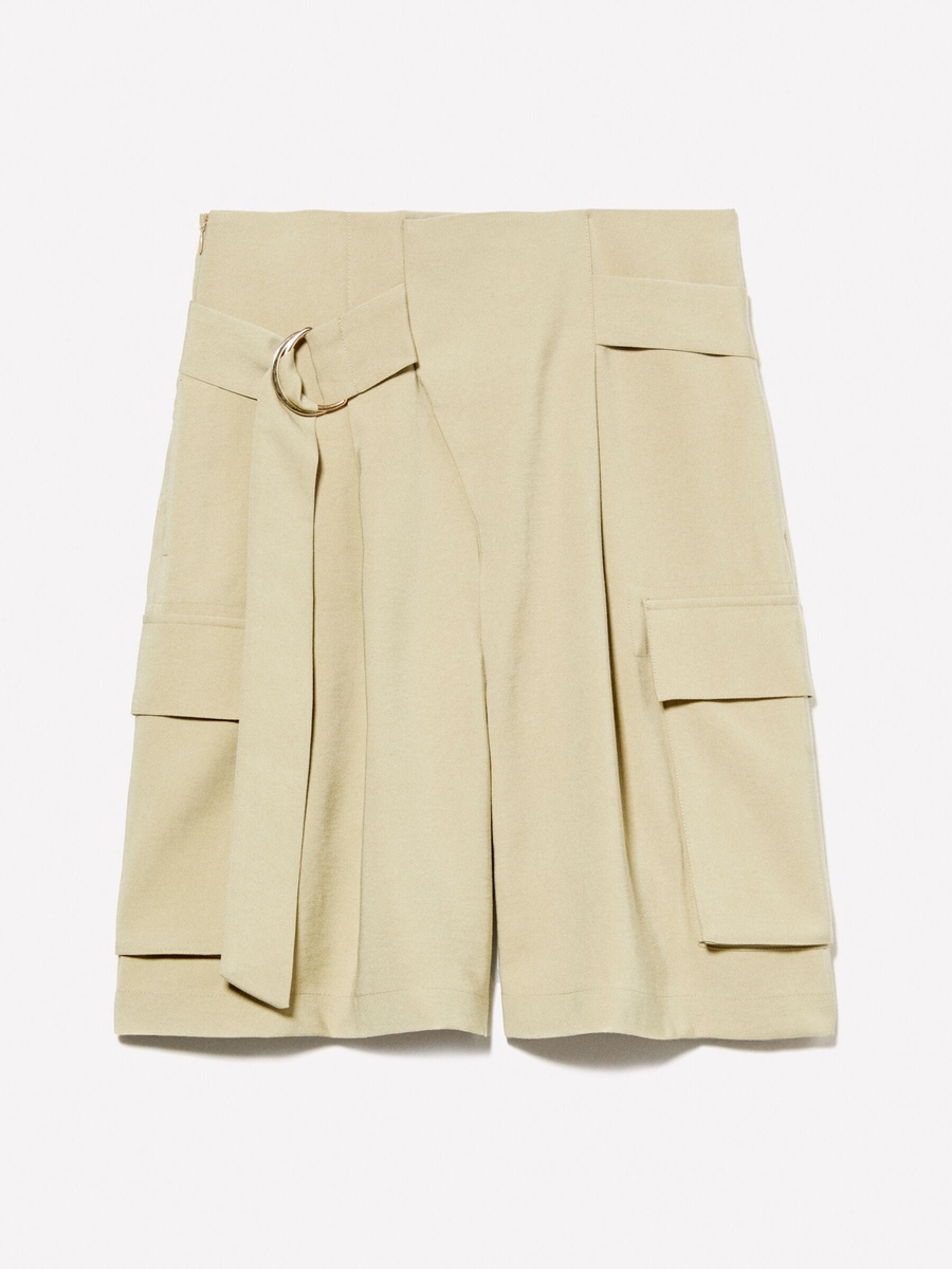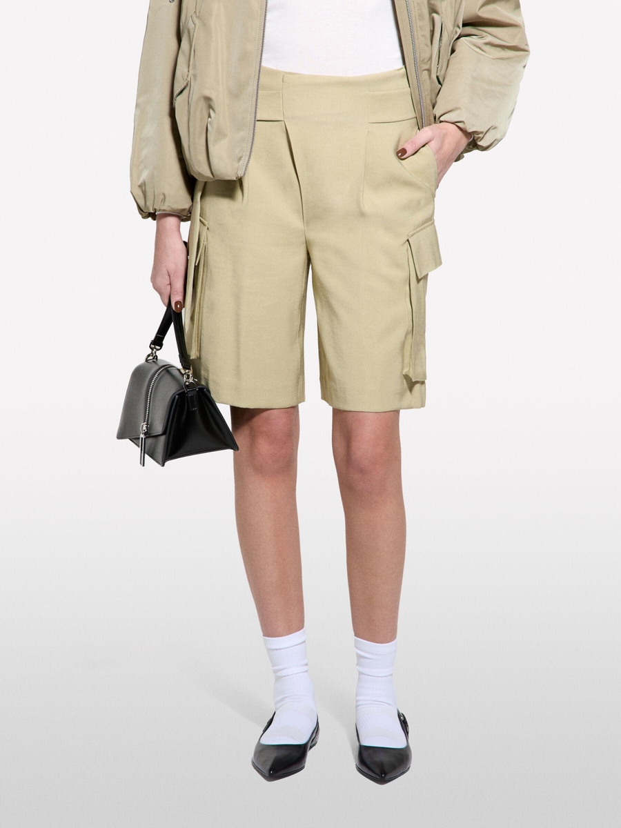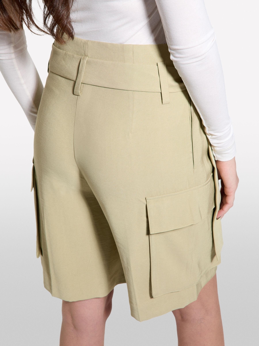 Viskoz Karışımlı Kemerli Comfort Fit Bermuda Şort Kadın Kum Rengi Şort - 325P4G48L901I