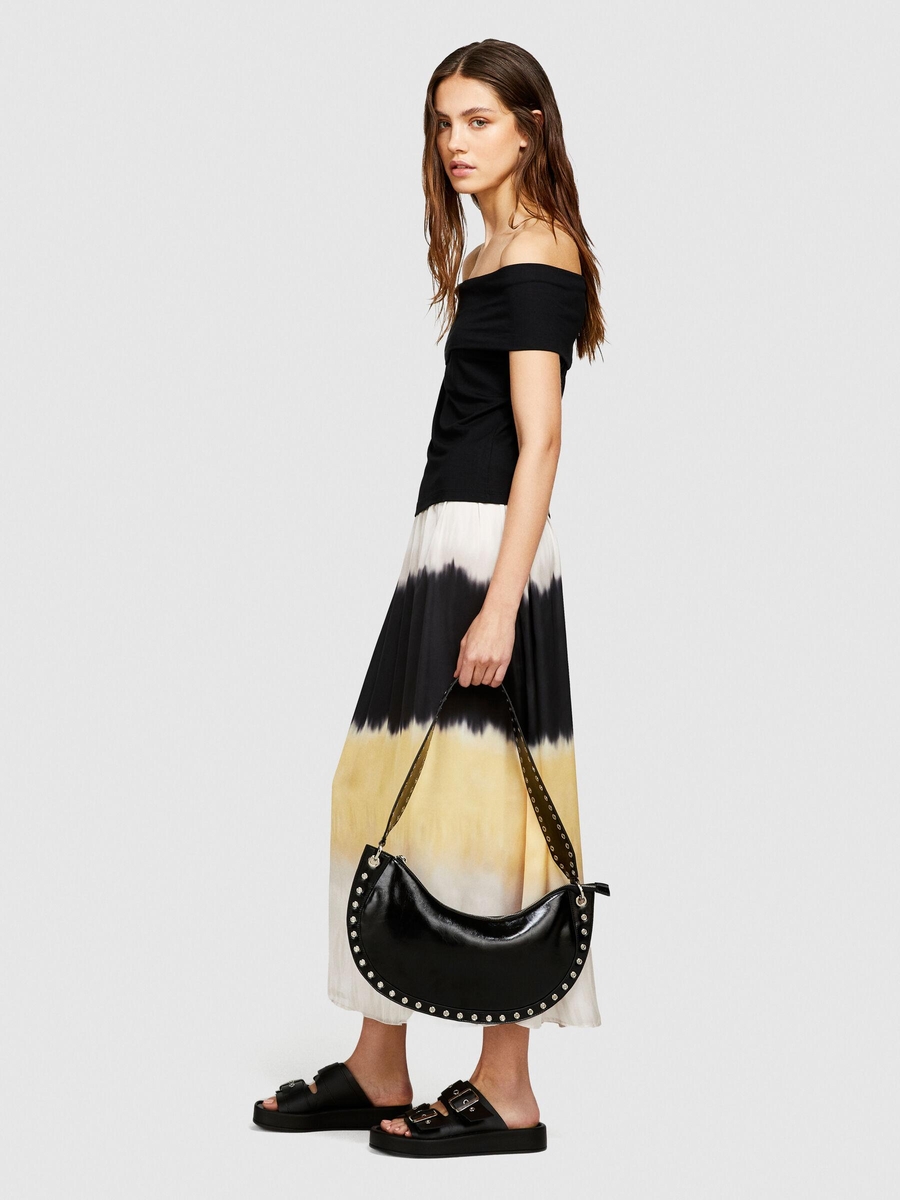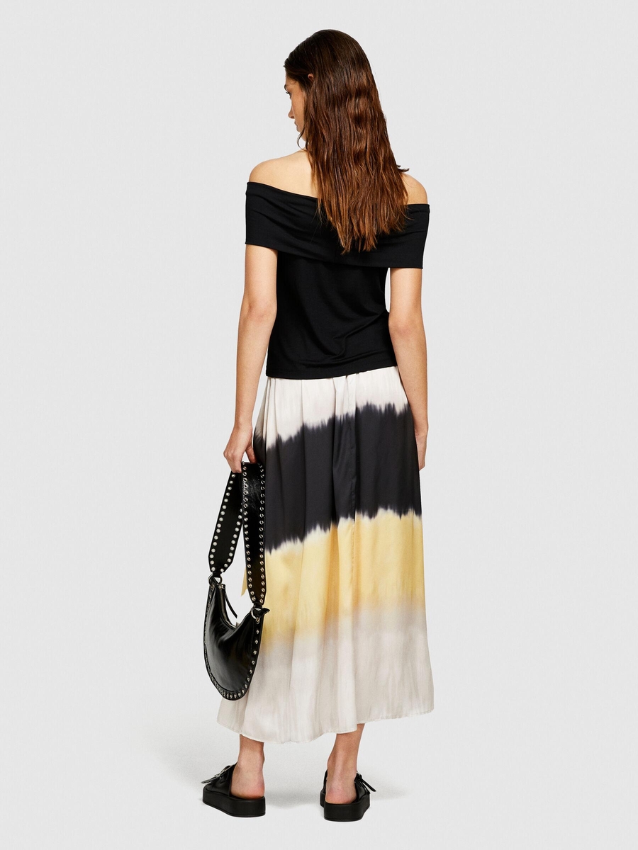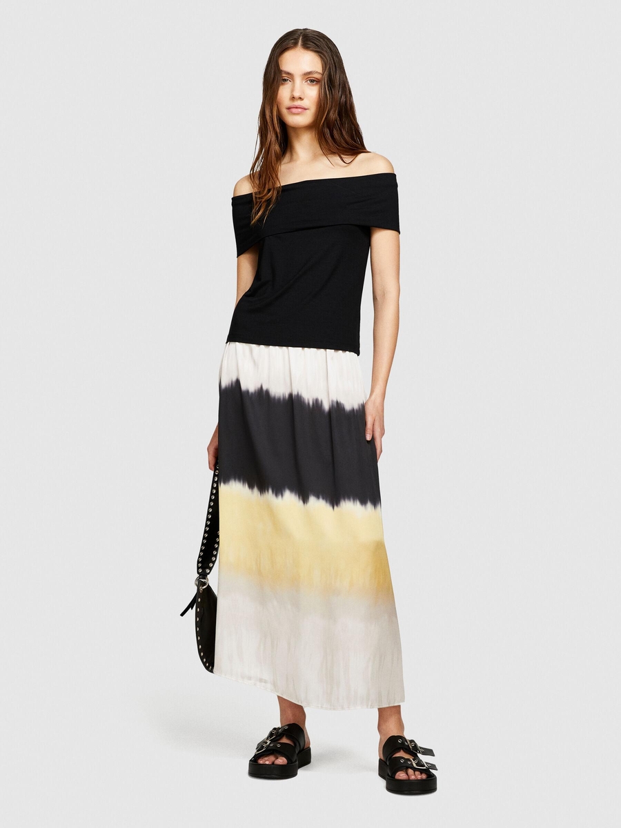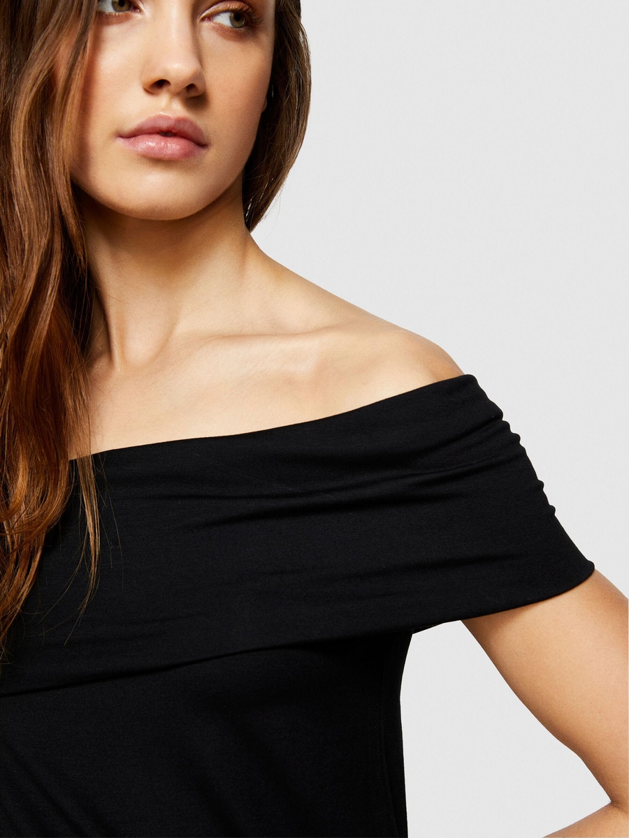 Viskoz Karışımlı Omzu Açık Dar Kesim T-Shirt Kadın Siyah T-Shirt - 324P33CALH00P
