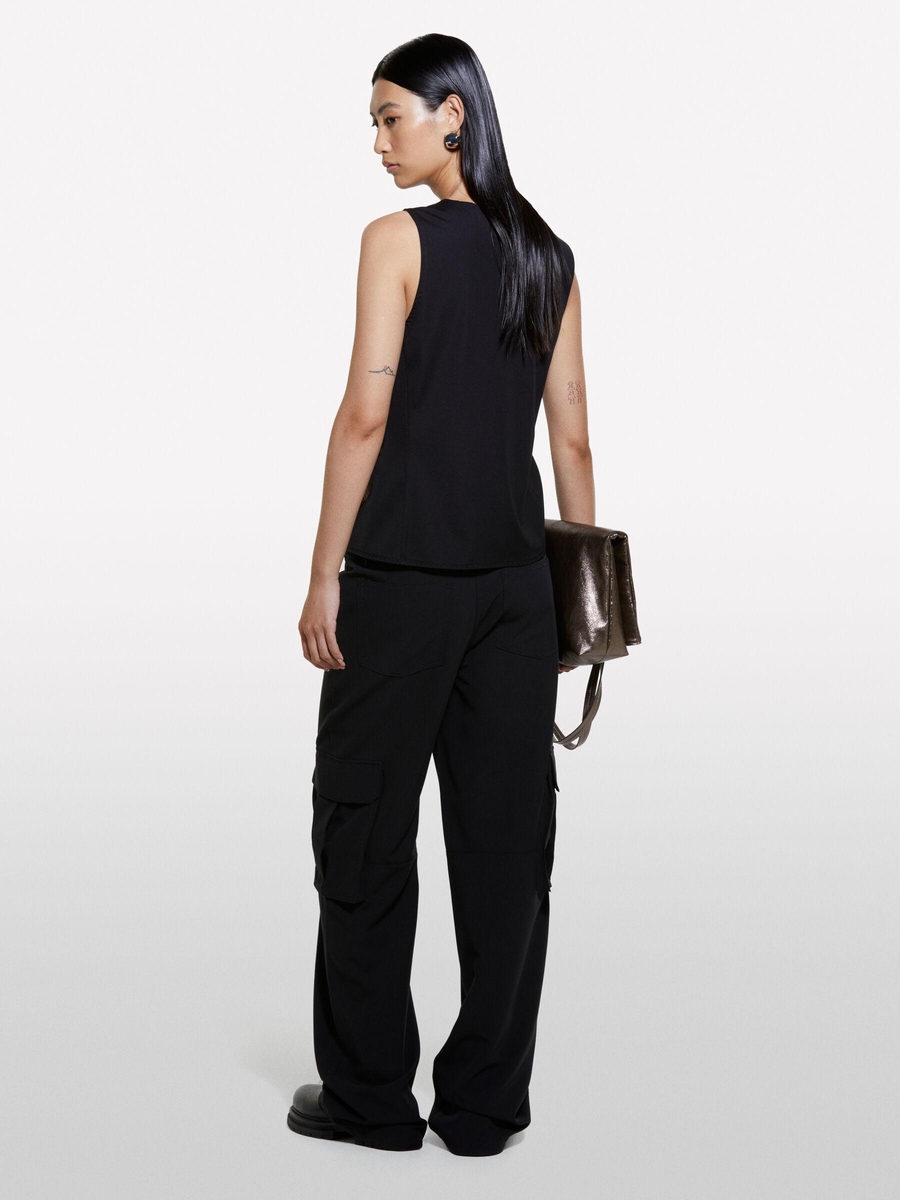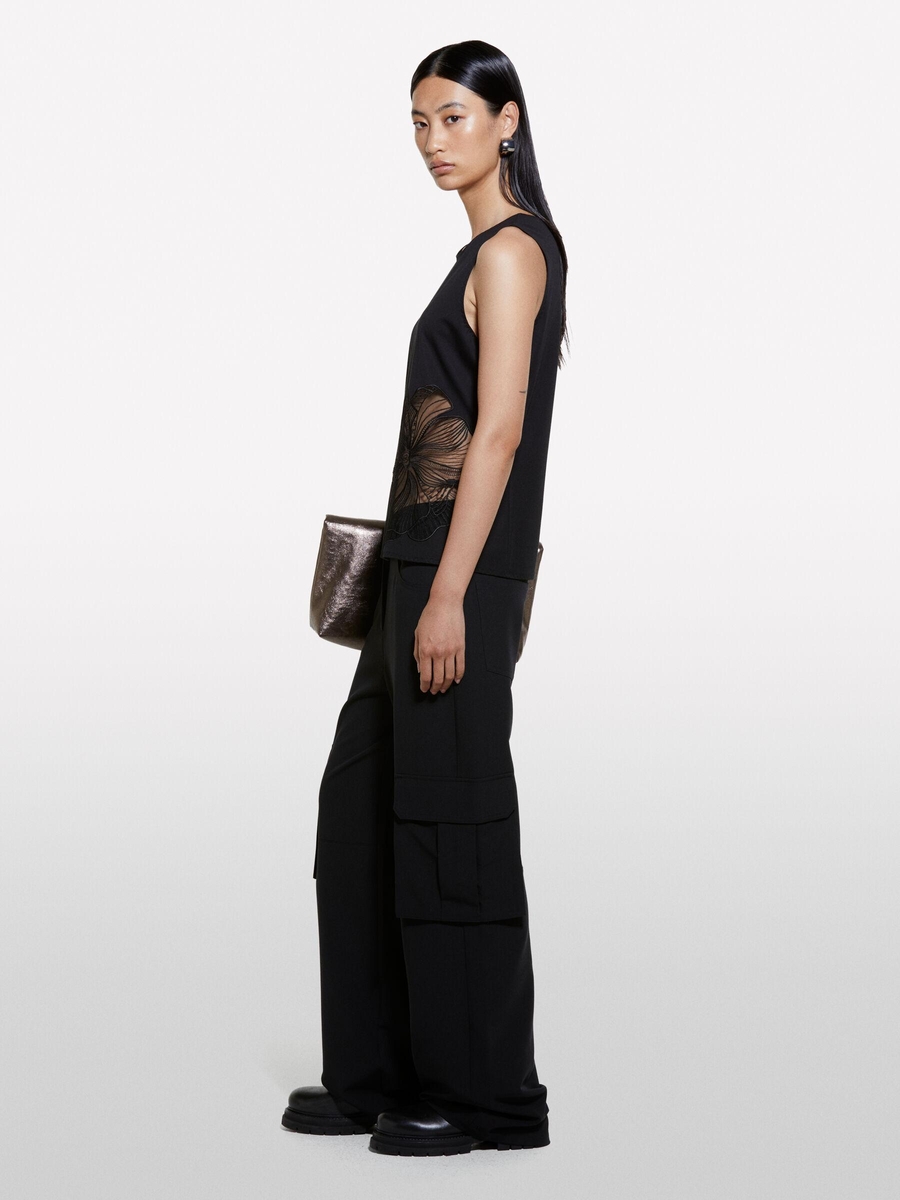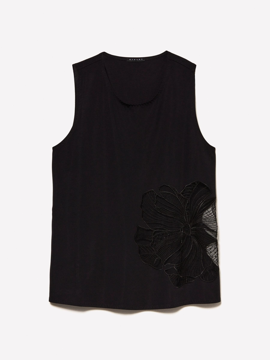 Viskoz Karışımlı Önü Nakış Motifli Bisiklet Yaka Kolsuz Üst Kadın Siyah T-Shirt - 324A5NQXLH01A