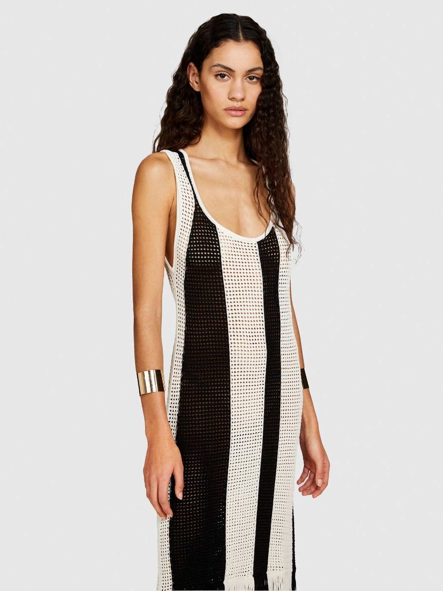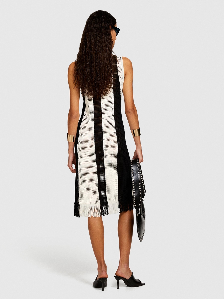 Viskoz Karışımlı Örgü Motifli Eteği Saçaklı Mini Elbise Kadın Haki Mix Elbise - 324P196PMV00P