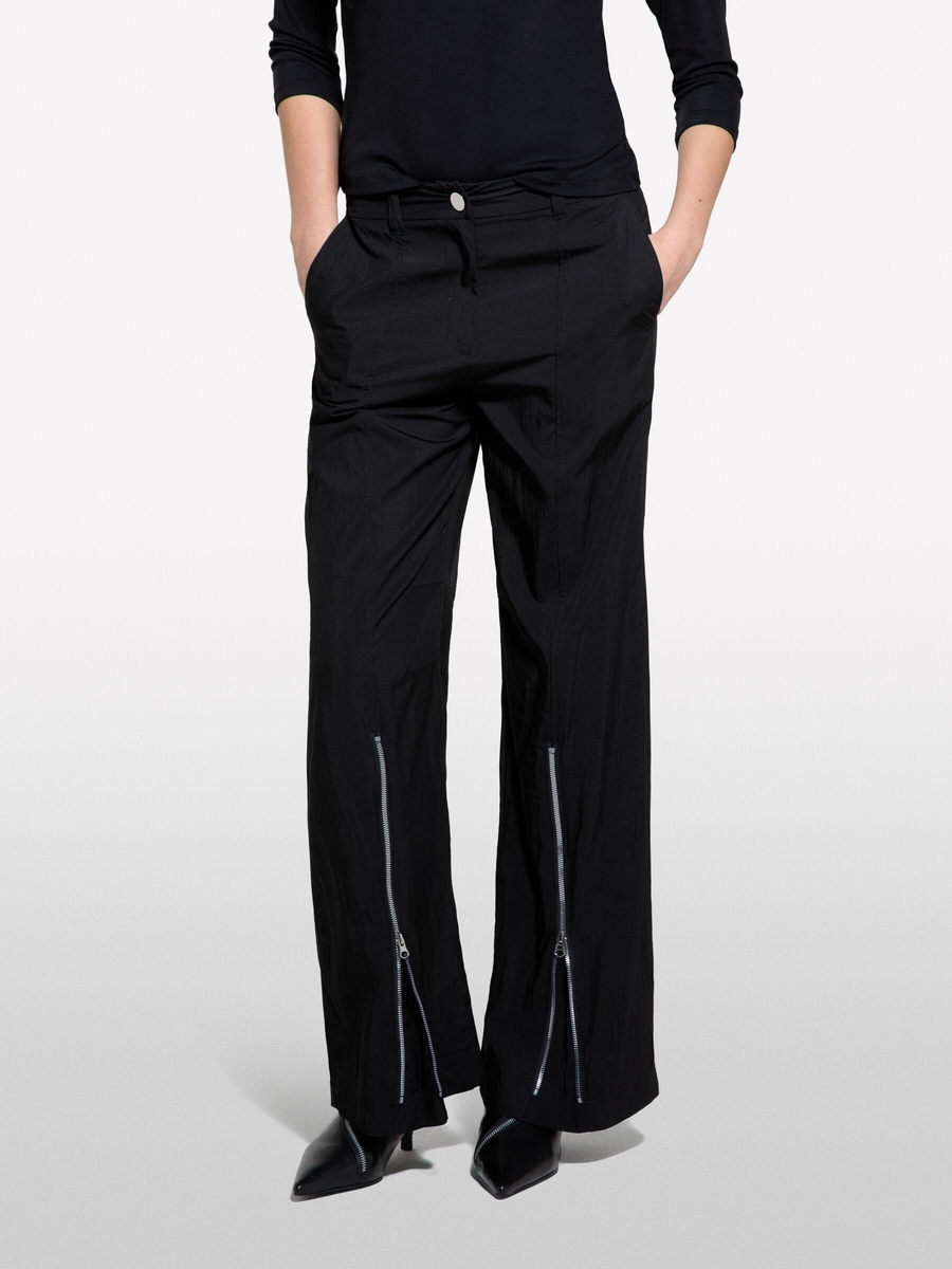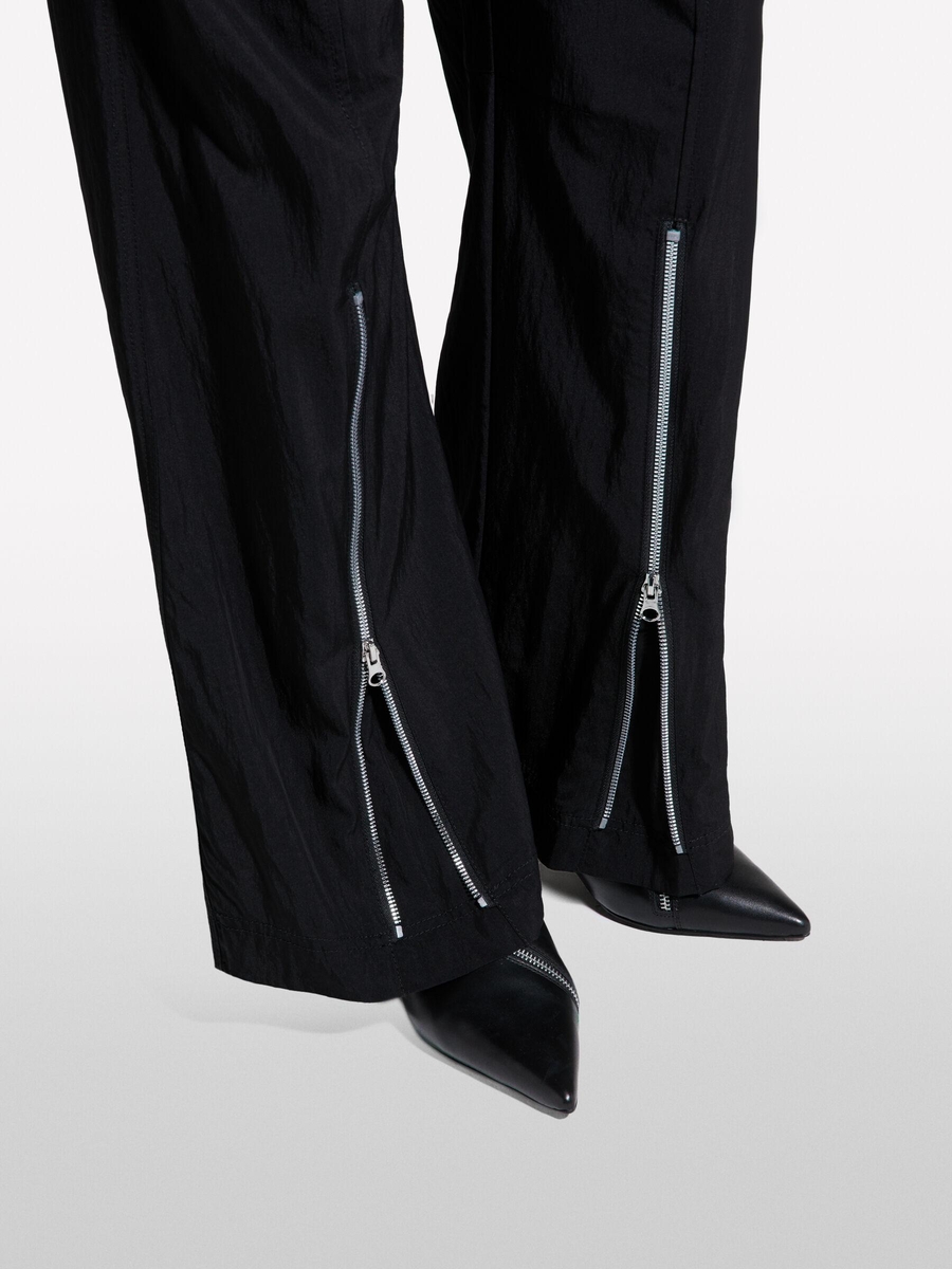 Viskoz Karışımlı Paçası Fermuarlı Düşük Bel Palazzo Pantolon Kadın Siyah Pantolon - 325P47ICLF06O